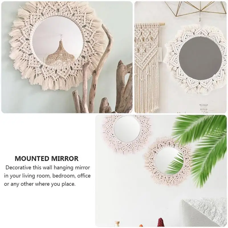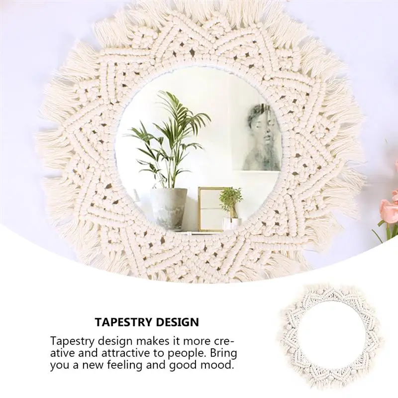 Нордическое плетеное вручную зеркало для макияжа гобелен спальня B B зеркало для макияжа гостиная подвесное зеркало мягкое украшение для стен