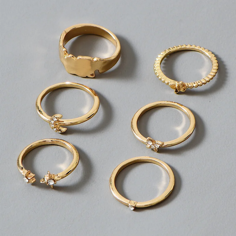 Набор колец для женщин 6 шт. золотые богемные винтажные женские кол...