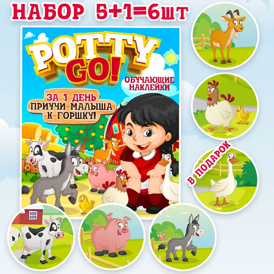 Обучающая наклейка для детского горшка PottyGo! ФЕРМА (5+1 шт.)