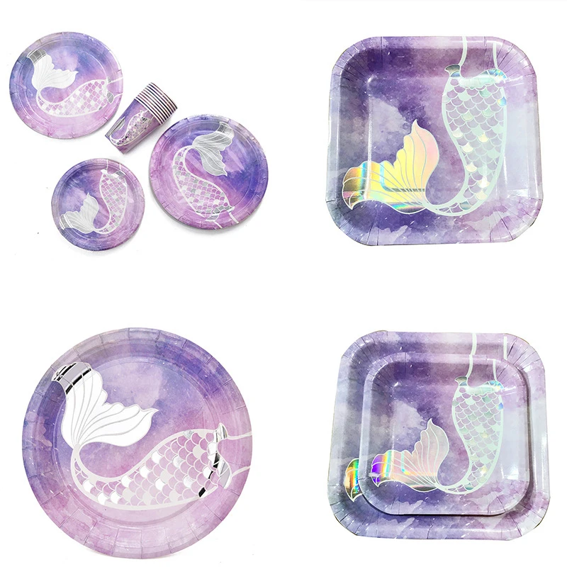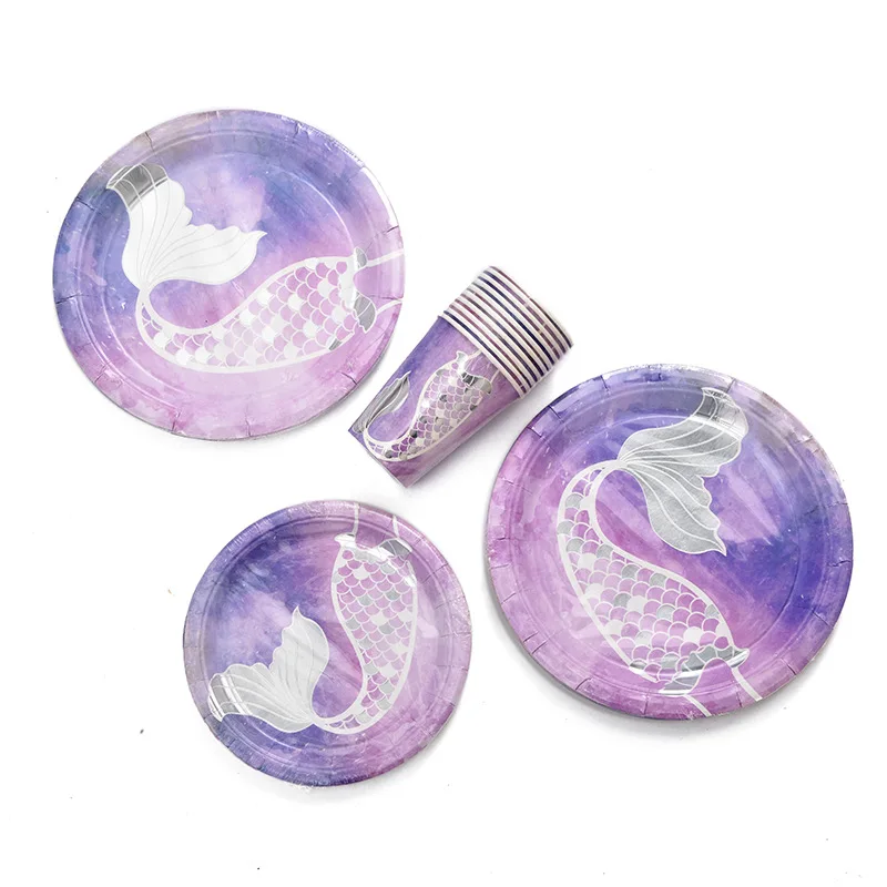 Набор одноразовой посуды русалка, креативный набор посуды для дня р...