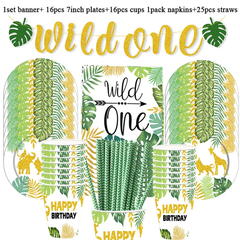 Сафари джунгли вечерние украшения и надписью Wild One День рождения...