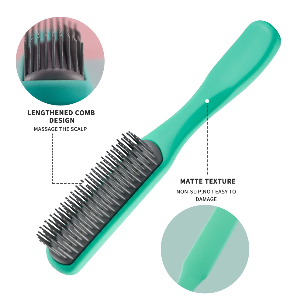 4. Девять рядов дизайна зубцов-расчесок, зубцы-расчески мягкие и не повреждают кожу головы, что может уменьшить вытягивание волос.
