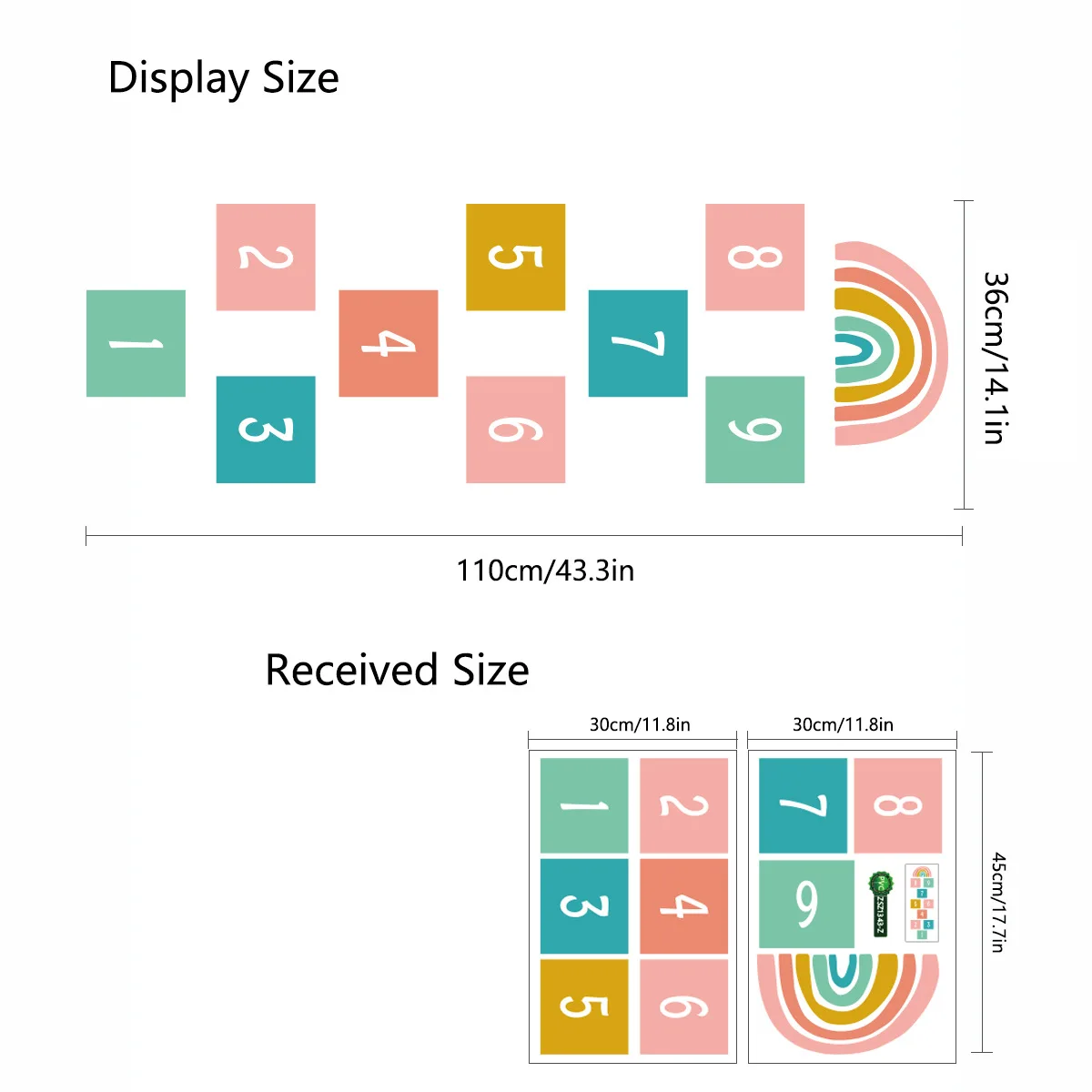 Мультяшные наклейки на пол с прыжками, скакалка, квадрат, радуга, к...