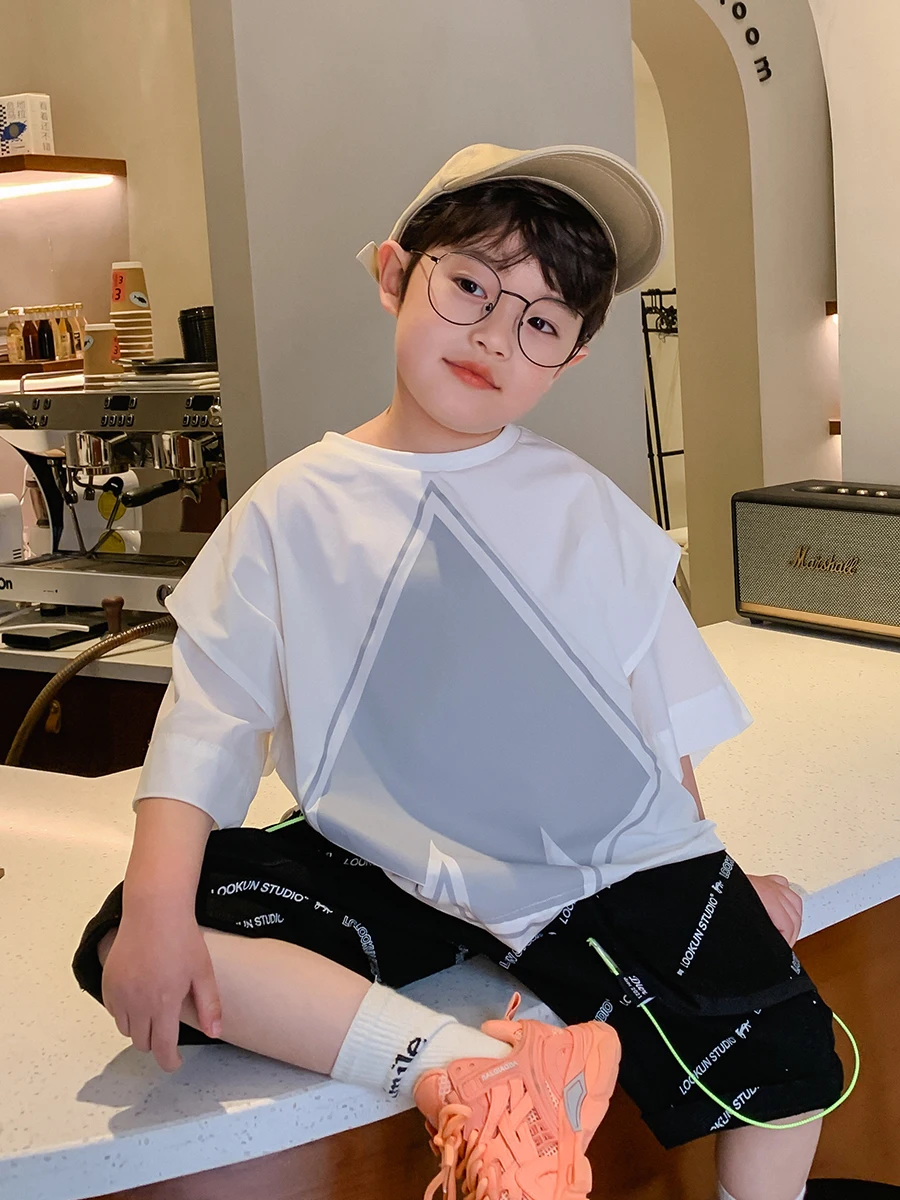 Детская одежда BB, футболка с коротким рукавом для мальчиков, Новинка лета 2021, Модный Топ среднего и большого размера с коротким рукавом в Корейском стиле