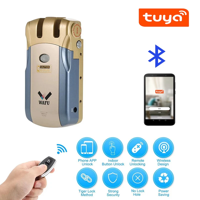 Умное приложение Tuya Wireless 433 МГц, Bluetooth-совместимый пульт дистанционного управления, Электрический дверной замок, невидимый, без ключа, с 4 пультами дистанционного управления