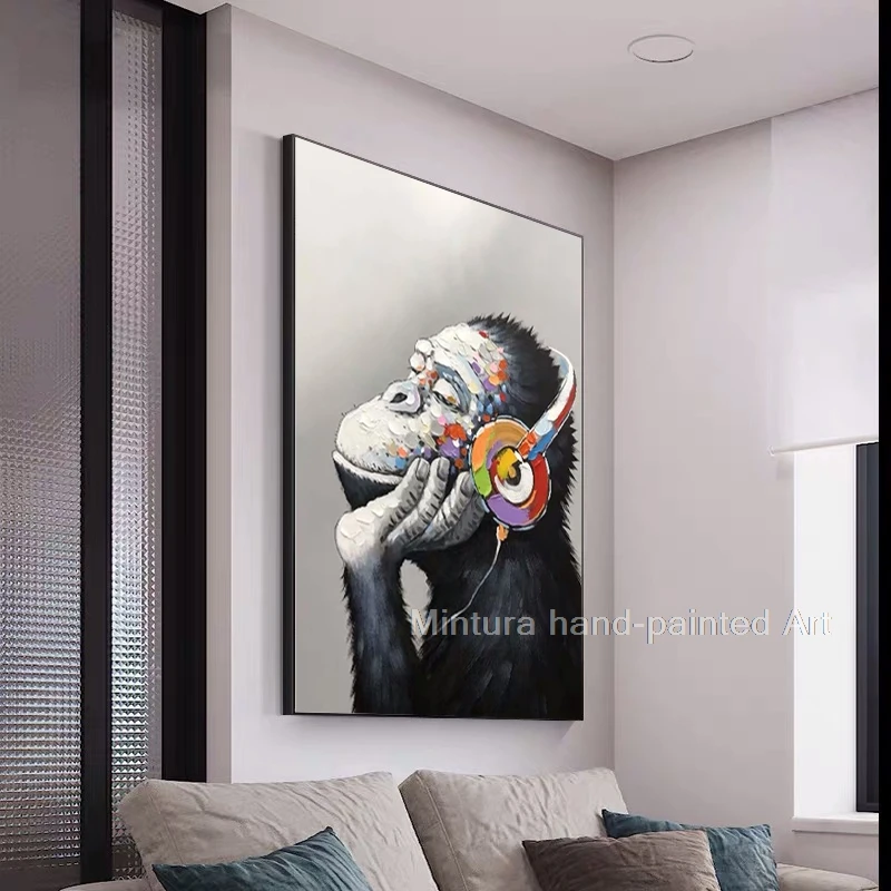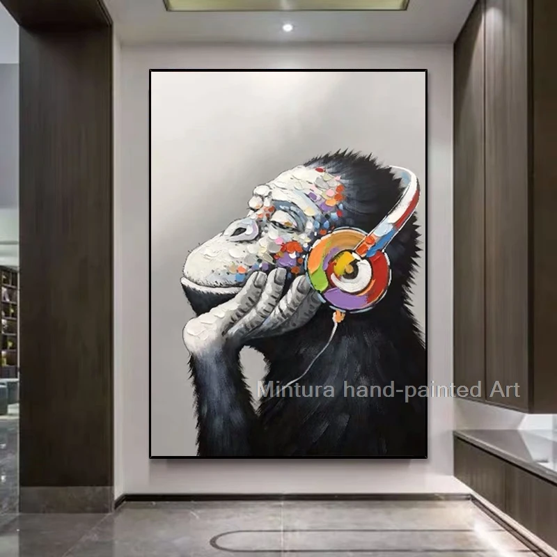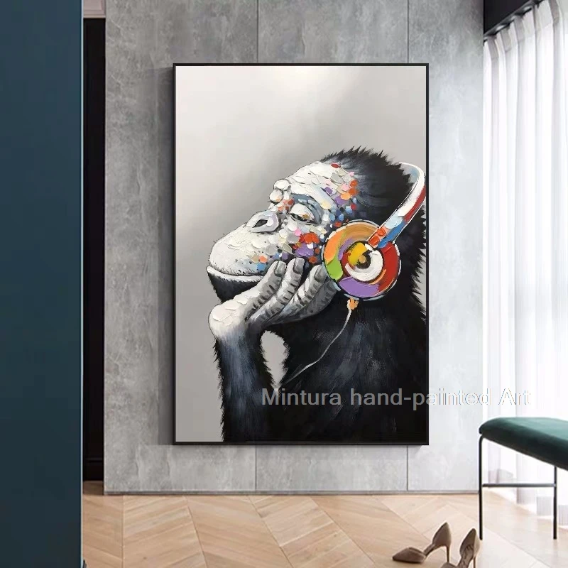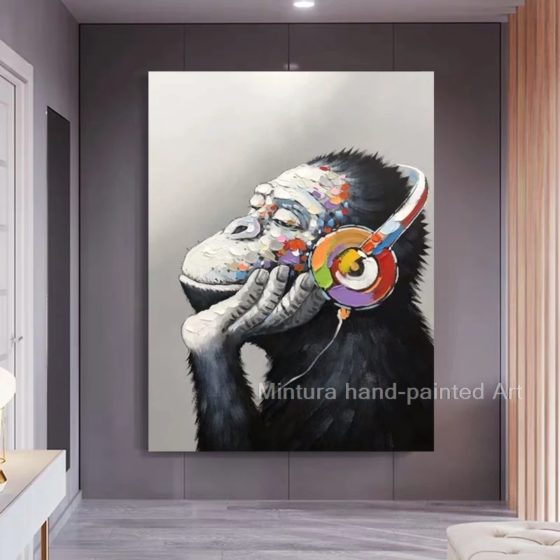 Mintura Ручная роспись Современные животные хорошая музыка Горилла масляная живопись на холсте настенное искусство для прихожей гостиная домашний декор большой