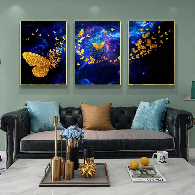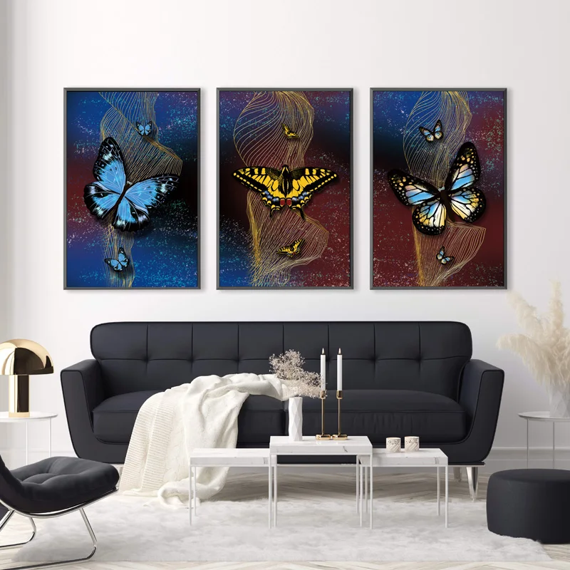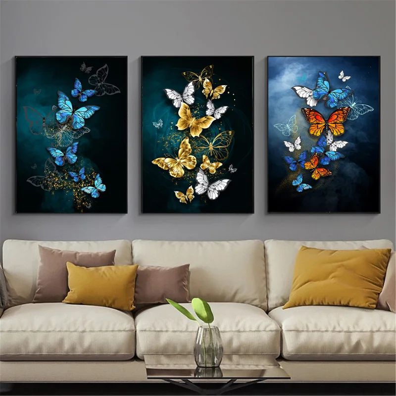 Постер в скандинавском стиле с синей бабочкой, современная абстрактная Настенная картина в скандинавском стиле, Картина на холсте, украшение для дома, настенная живопись для гостиной