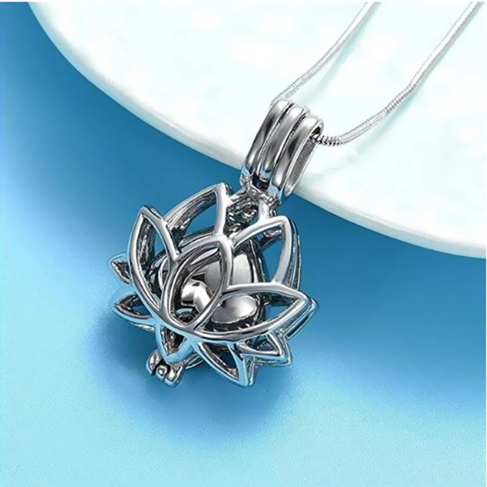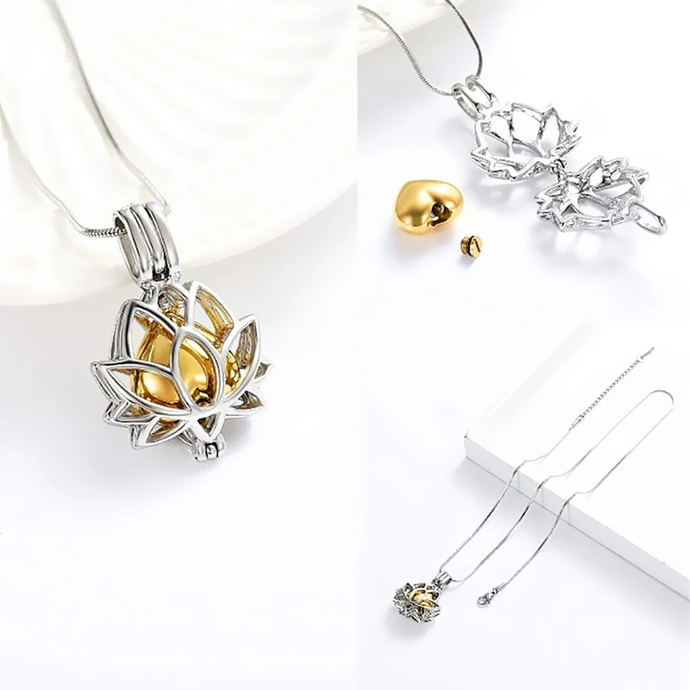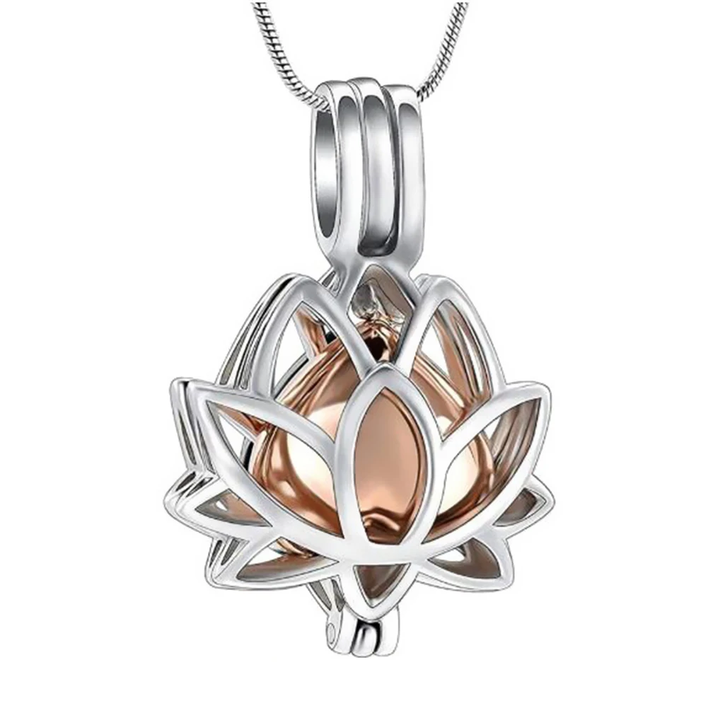 Ажурное ожерелье для кремации из нержавеющей стали, кулон в форме золы, цветка лотоса, ювелирное изделие для кремации, для золы