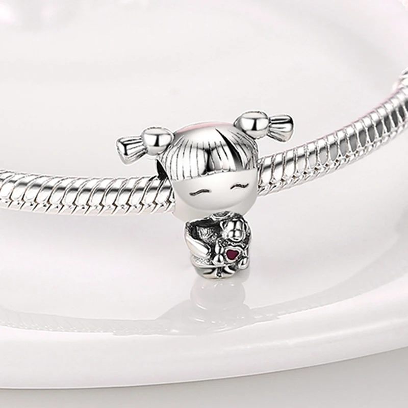 100% реальный серебряный цвет мультфильм робот мальчик девочка Пара серия подходит для оригинального 3 мм браслет и изготовление браслета
