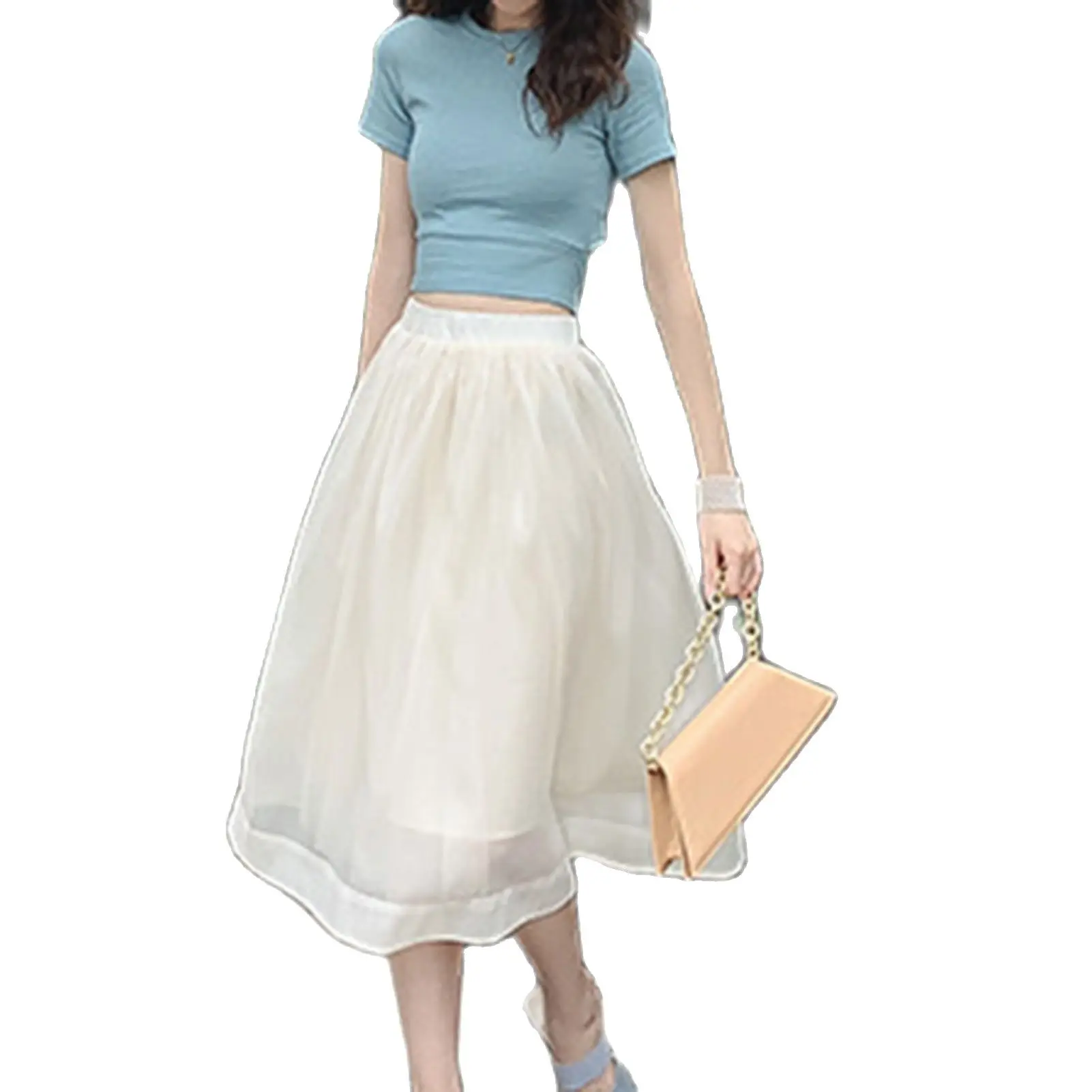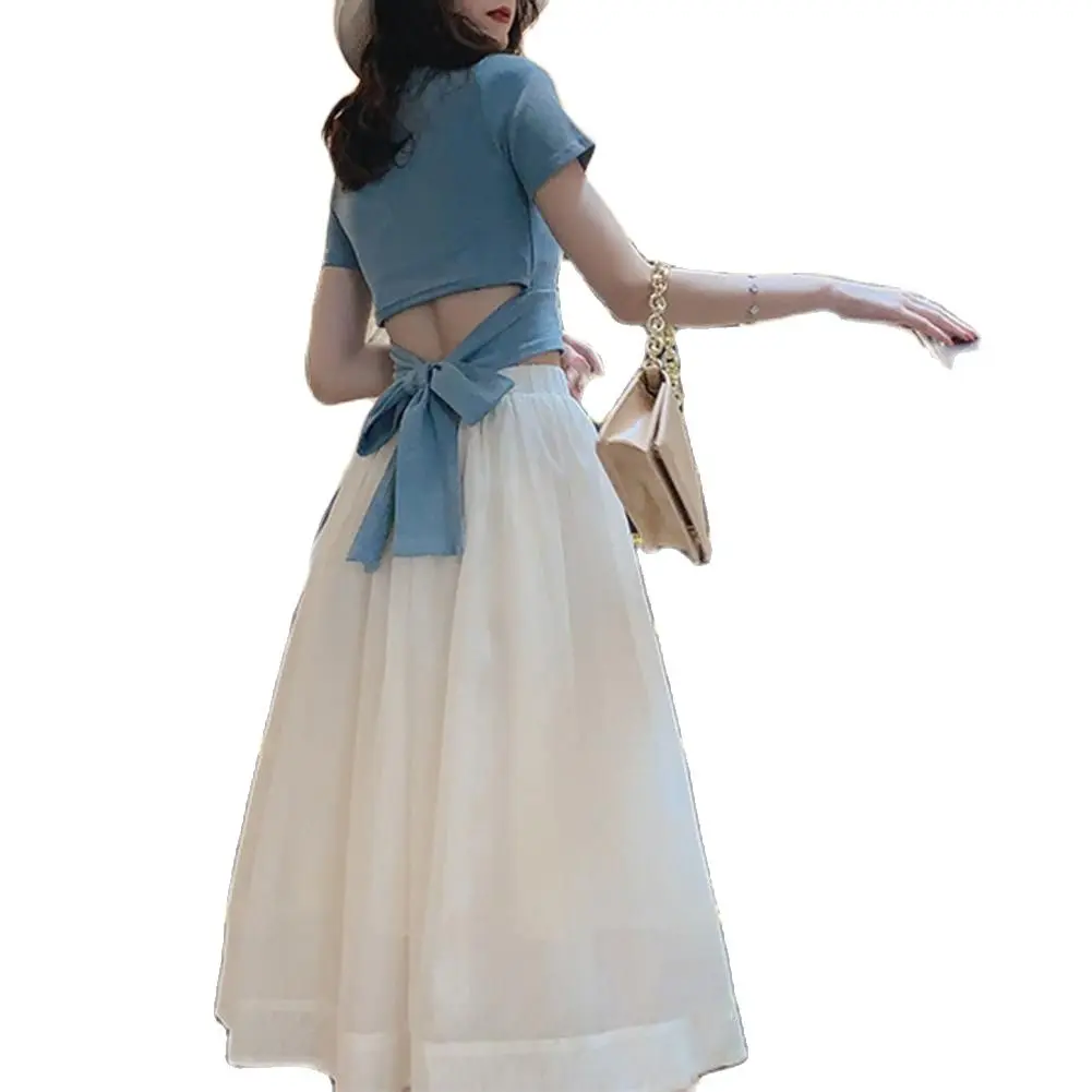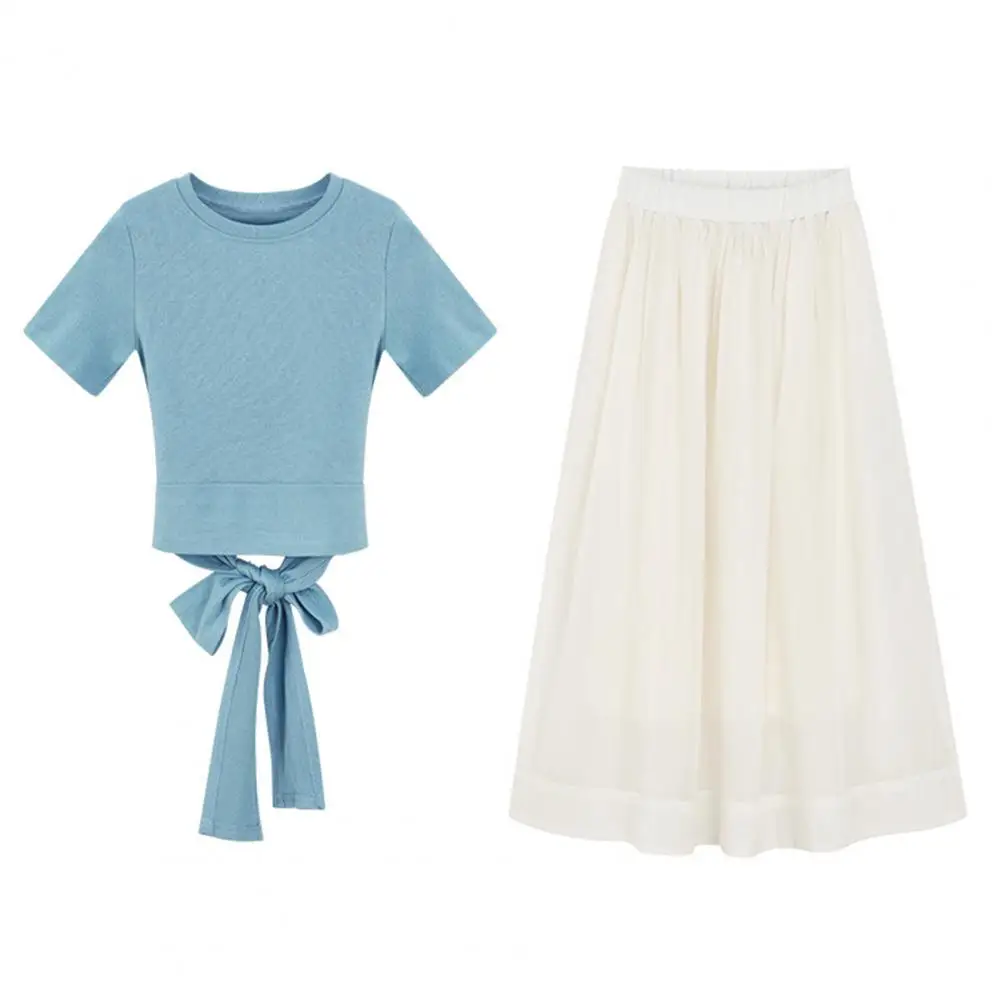 Длинные юбки, Женская юбка из 2 частей и топ с бантом и коротким рукавом, юбки с бантом, Женская юбка с высокой талией, летние юбки 2021