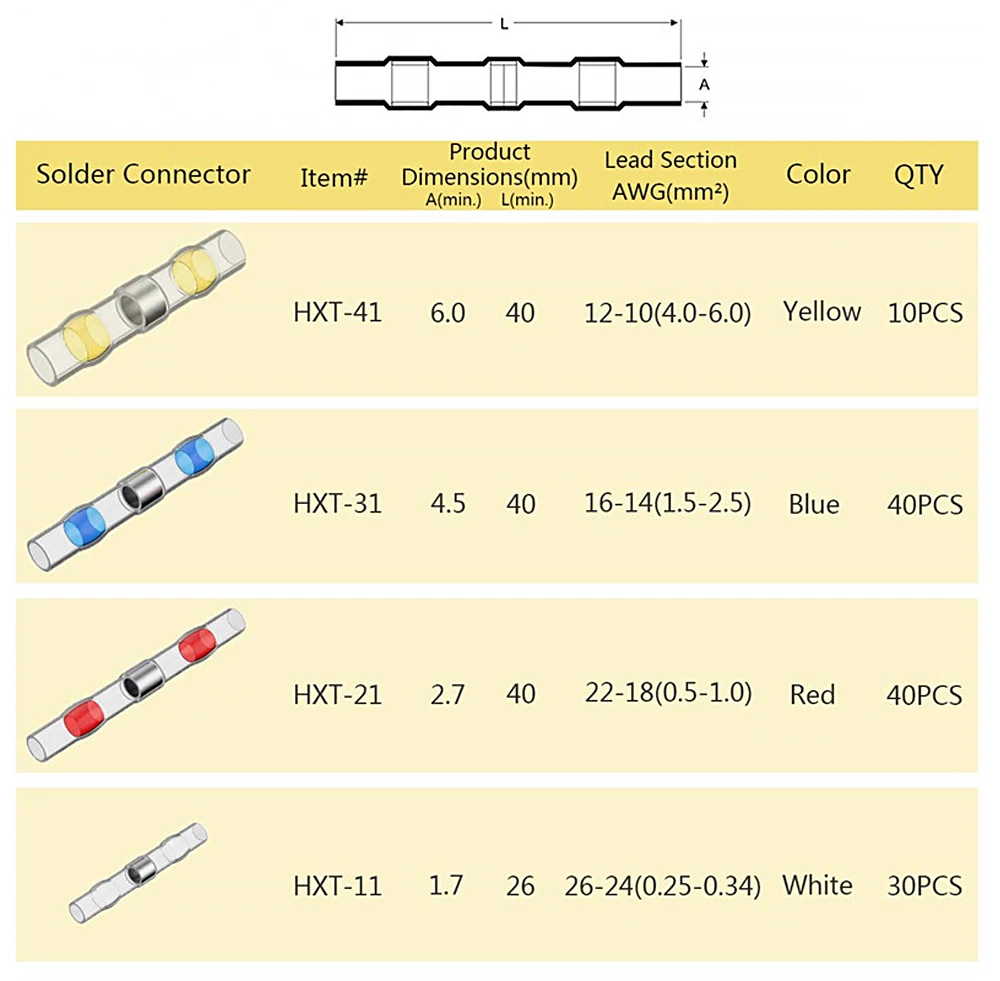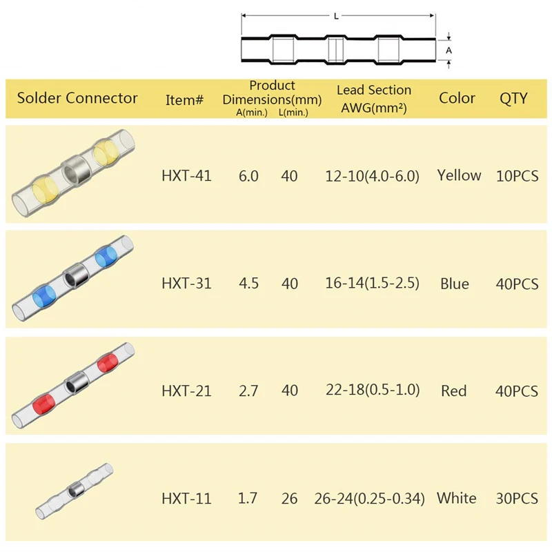 Термоусадочный стыковой обжимной терминал, водонепроницаемый сварочный Электрический стыковой соединитель, комплект соединений для проводов и кабеля