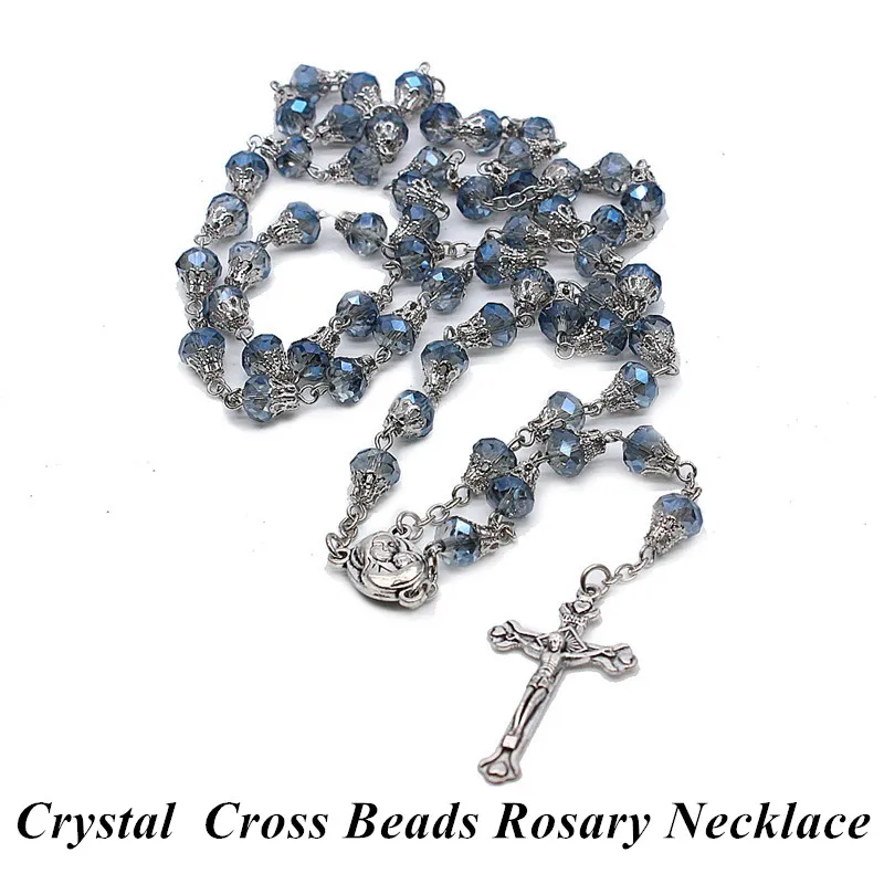 Новое ожерелье ручной работы с подвеской в виде креста из кристаллов, цепочка с кулоном в виде католических святых, молитвенные изделия, ювелирные изделия в подарок