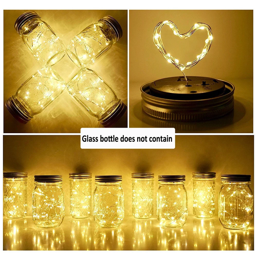 Светодиодная уличсветильник гирлянда 6 шт. на солнечной батарее, уличная лента для каменщиков, банок, бутылок, СВЕТОДИОДНАЯ цепочка, украшение для свадьбы, Рождества, сада, вечеринки