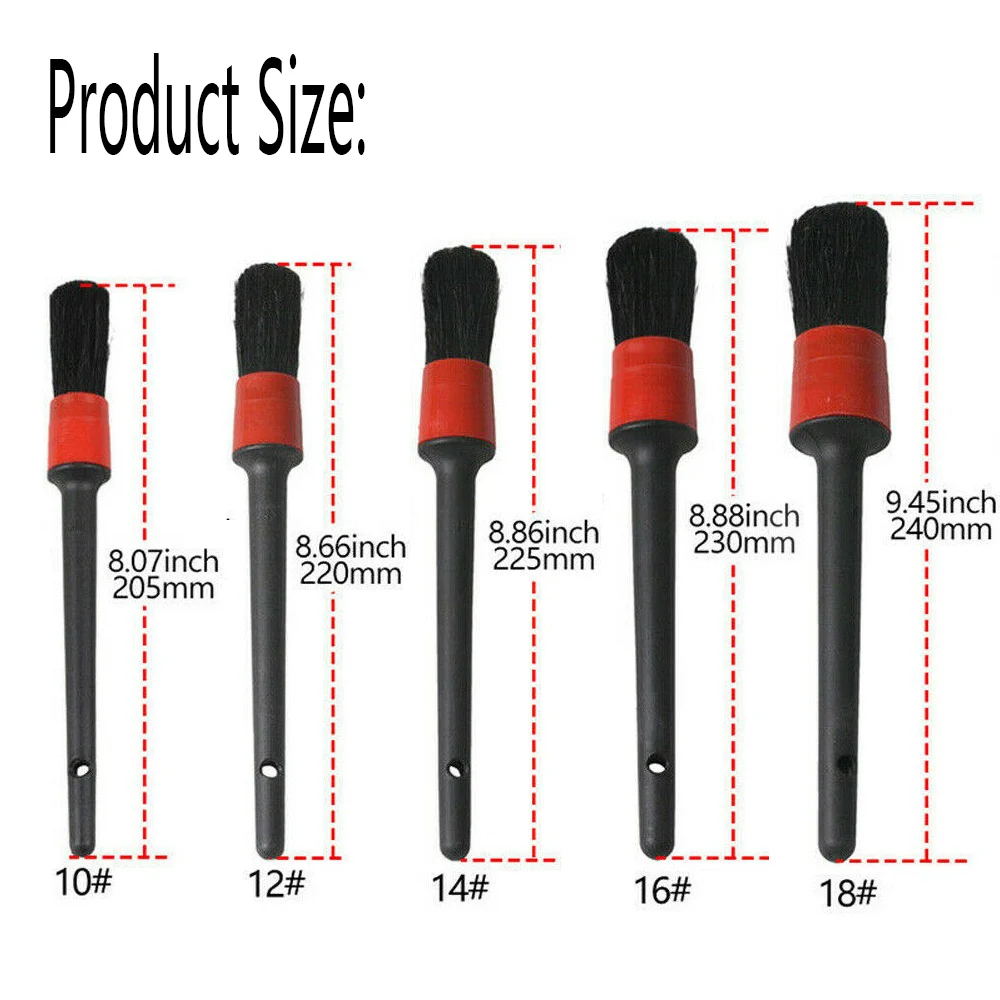 1. Поставляется с кистями 5 разных размеров, вы можете выбрать любую, соответствующую вашим потребностям, достаточной длины для легкого исследования и проникновения в гайку, узкого пространства.2. Кисть из свиной шерсти и шелковой шерсти очень гибкая и не теряет волосы, идеально подходит для использования на мягких кожаных сидениях или отделки, например, внешних эмблемах.3. Без металлических деталей, правильное сочетание прочности и гибкости. Никаких шансов испортить или поцарапать ваши деликатные колеса.4. Многофункциональная щетка, Влажная и сухая. Эта щетка предназначена для удаления пыли, хлебных крошек и других мелких предметов с ваших колес, вентиляционных отверстий, отделки, щелей сидений и эмблем, сделайте ваш любимый автомобиль полностью аккуратным и чистым изнутри.5. Подходит для всех автомобилей, внедорожников, грузовиков, фургонов, транспортных средств, мотоциклов.