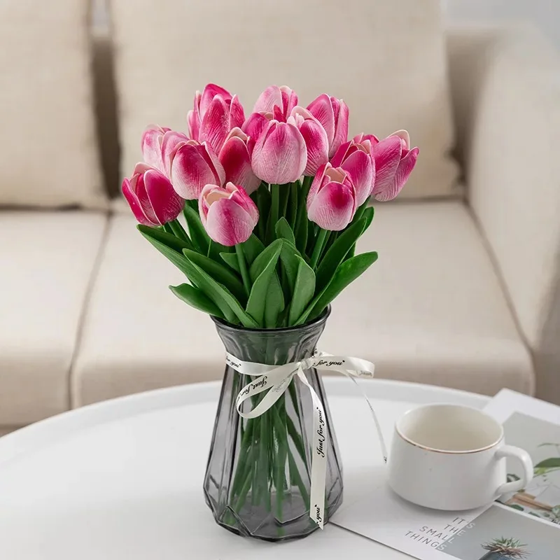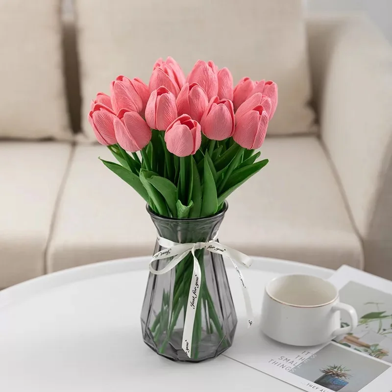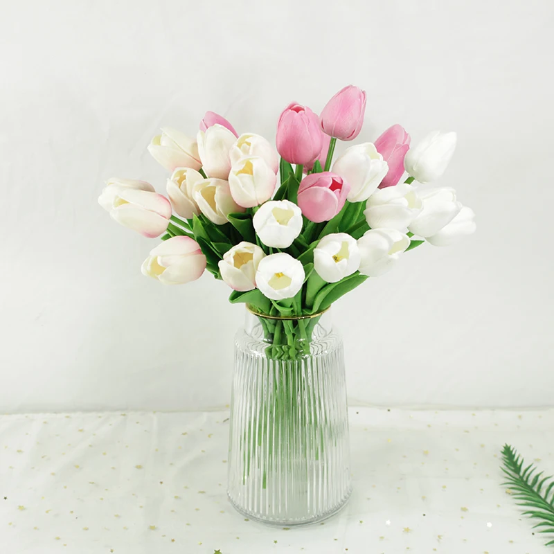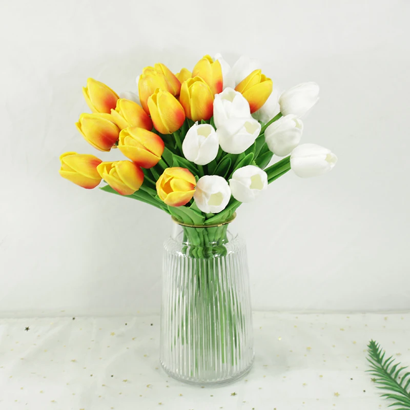 35 шт./лот искусственные цветы тюльпана из искусственной кожи, искусственные цветы на ощупь, свадебный букет, вечерние украшения для домашнего праздника