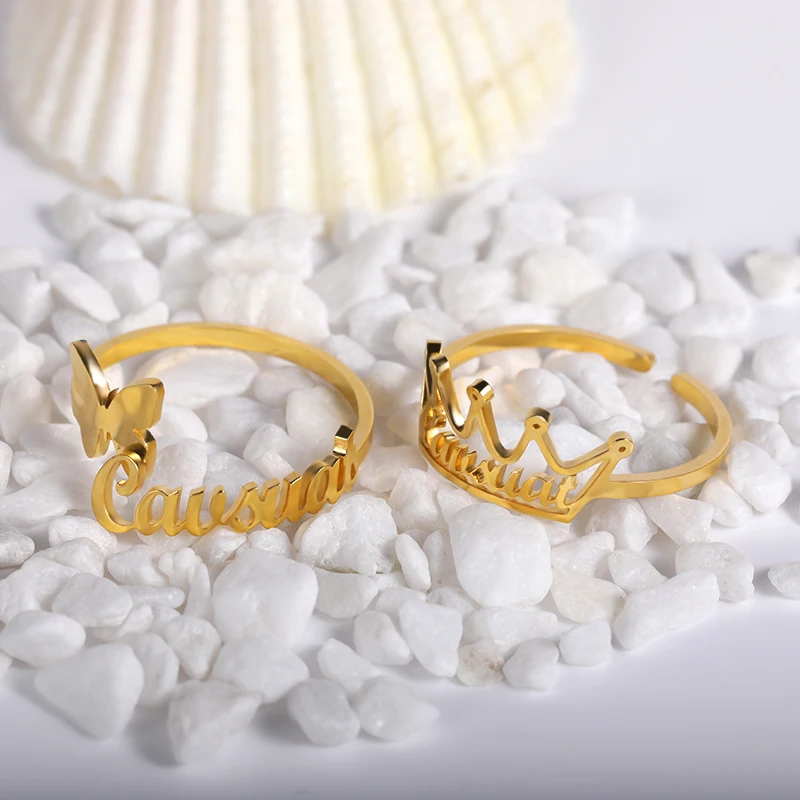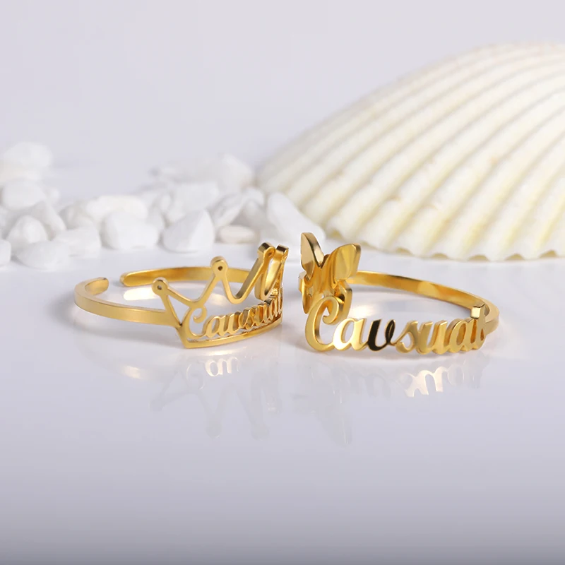 Индивидуальные Кольца с именем бабочки для женщин Золотые Регулируе...