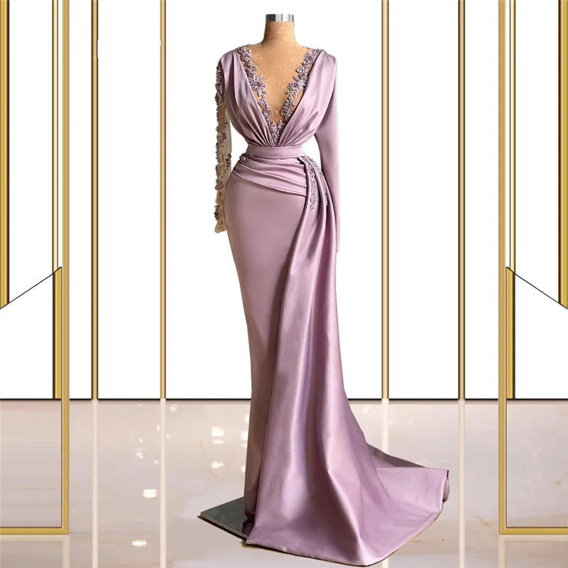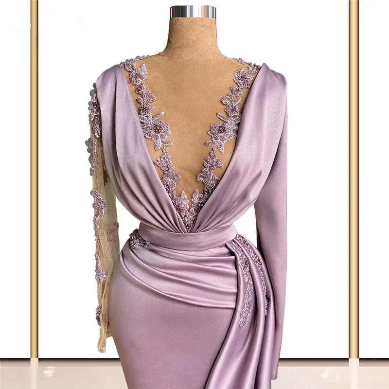 Фиолетовые шикарные вечерние платья с длинным рукавом и V-образным вырезом, элегантные женские арабские официальные платья для выпускного вечера, женское платье невесты, вечерняя одежда на заказ