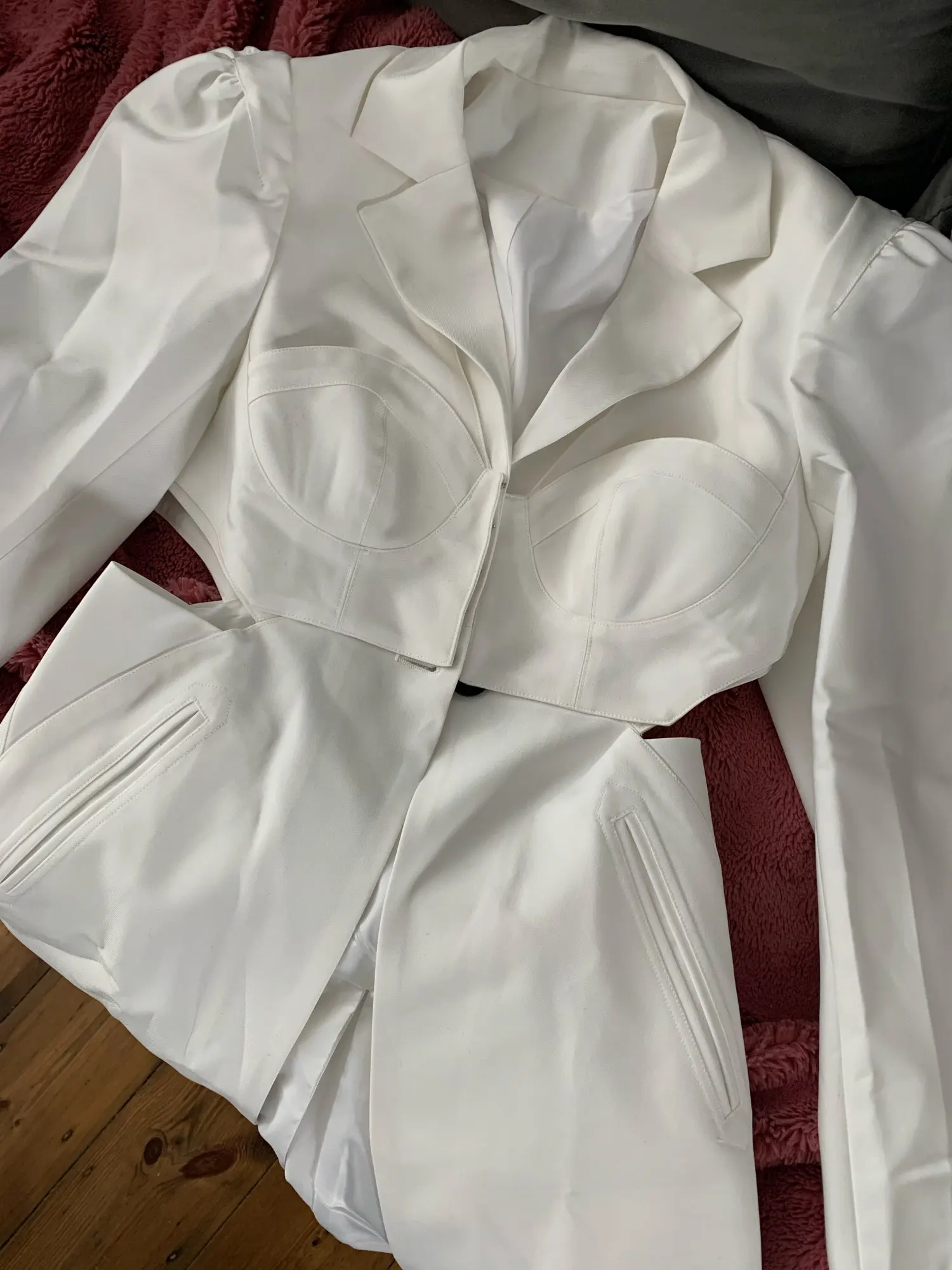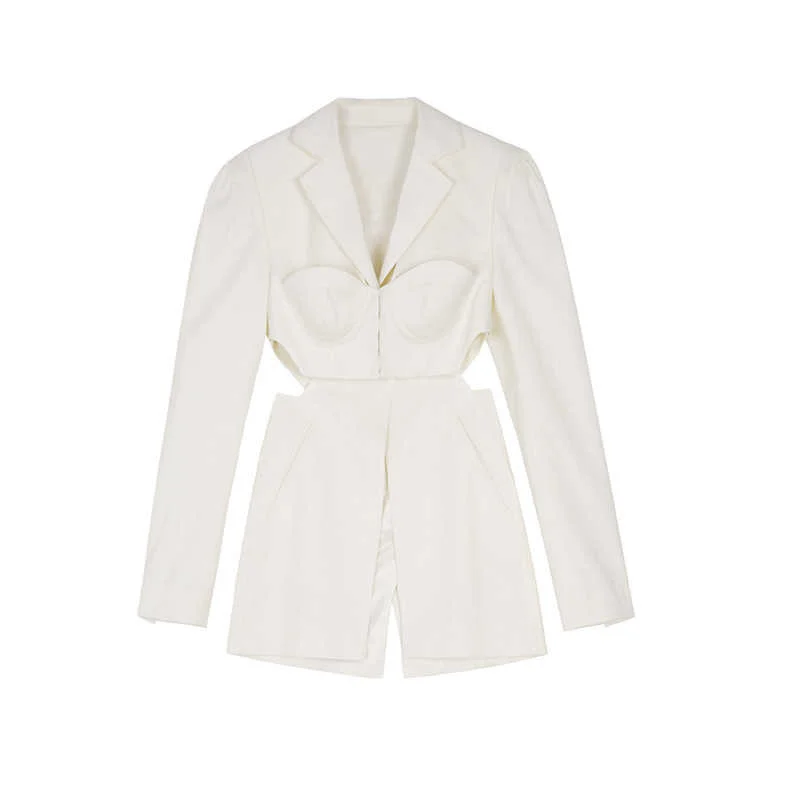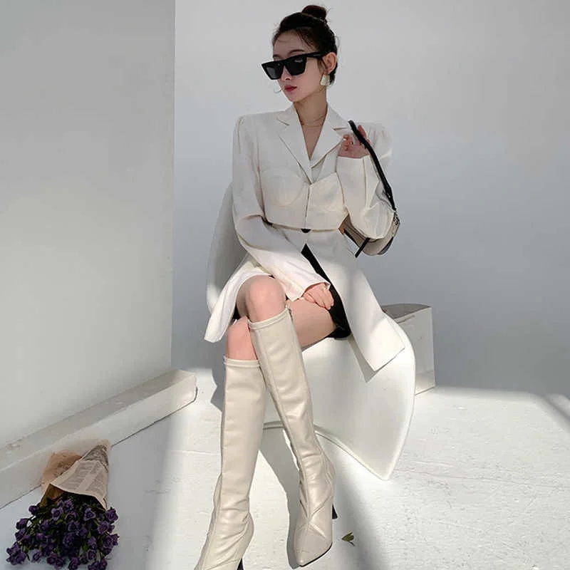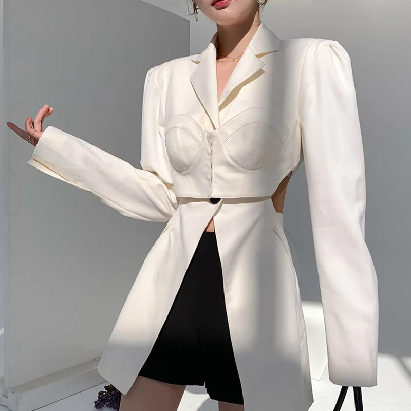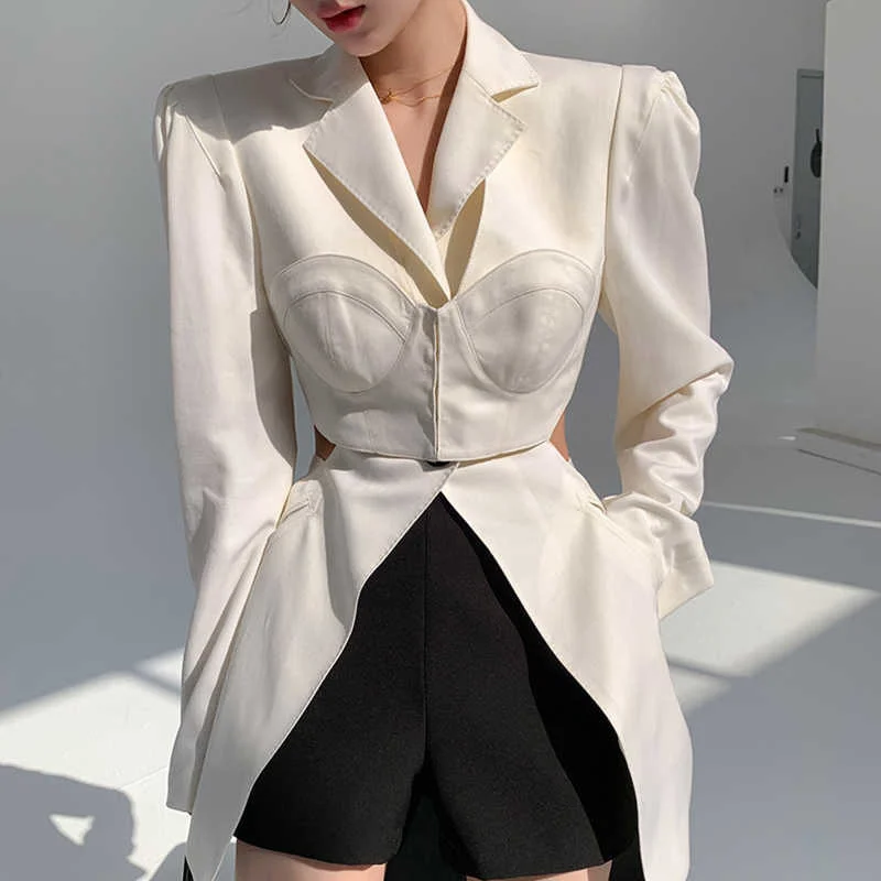Женский блейзер с отложным воротником TWOTWINSTYLE, белый прямой блейзер с длинным рукавом, весна 2021
