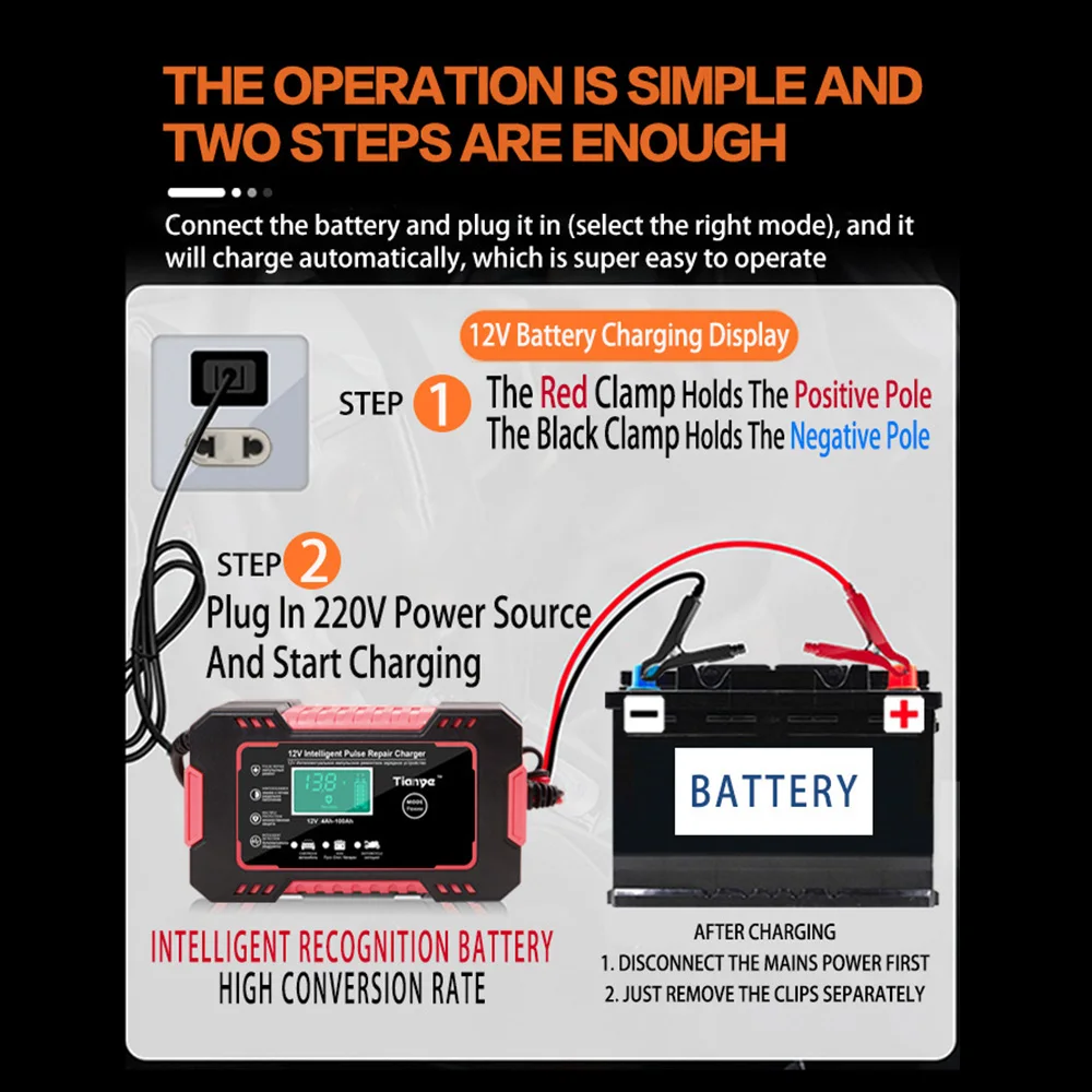 Зарядные устройства подходят для большинства типов батарей, включая кальций, гель и AGM, влажные батареи. Они также могут помочь восстановить дренажные и сульфированные батареи.