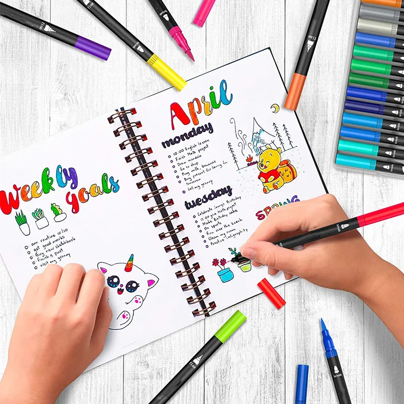 Watercolor Markers Features 1Dual Tip Brush Pen