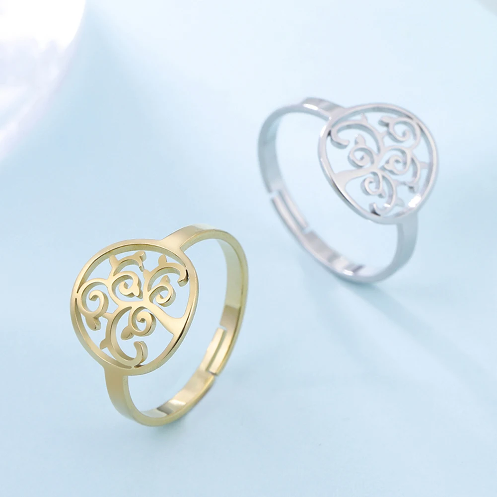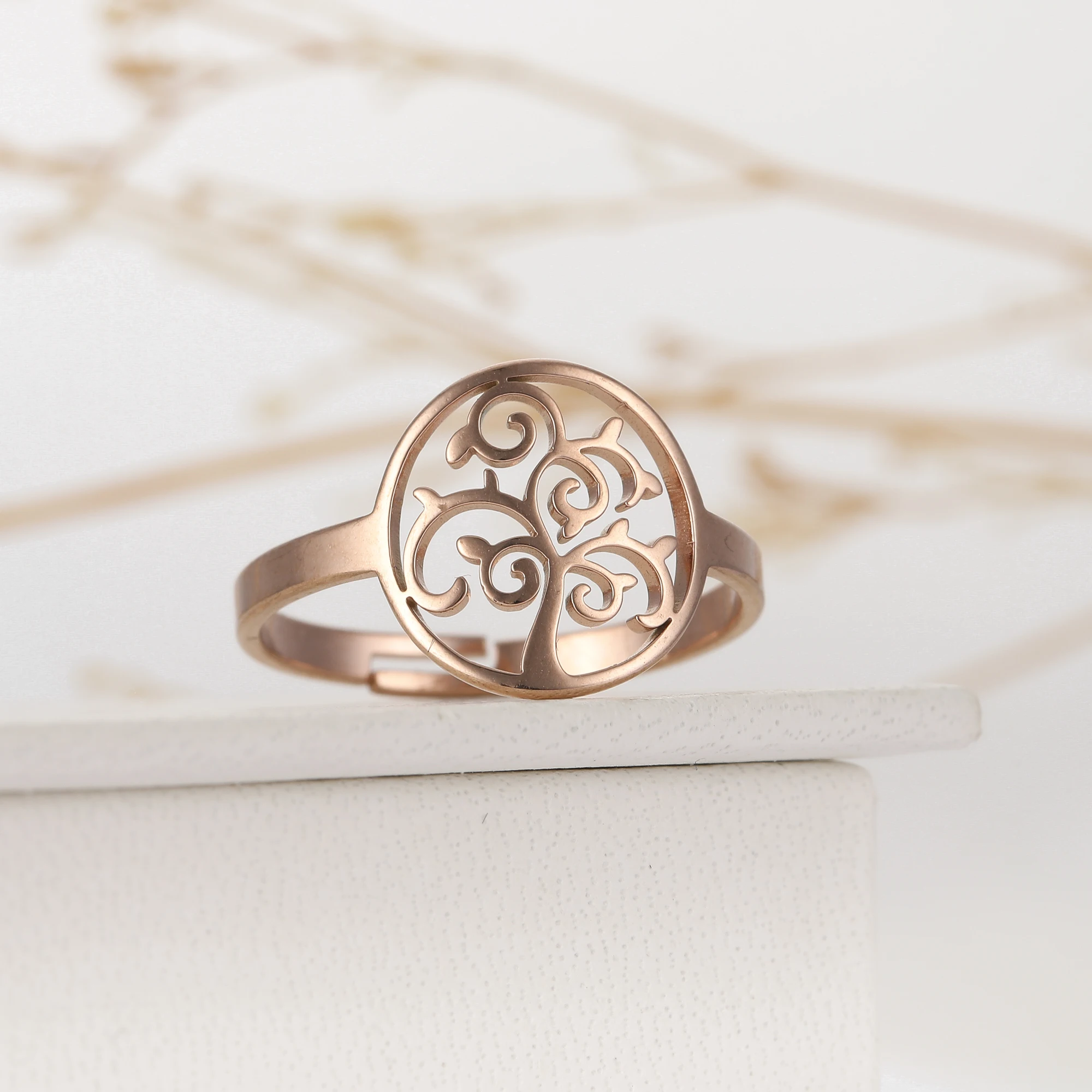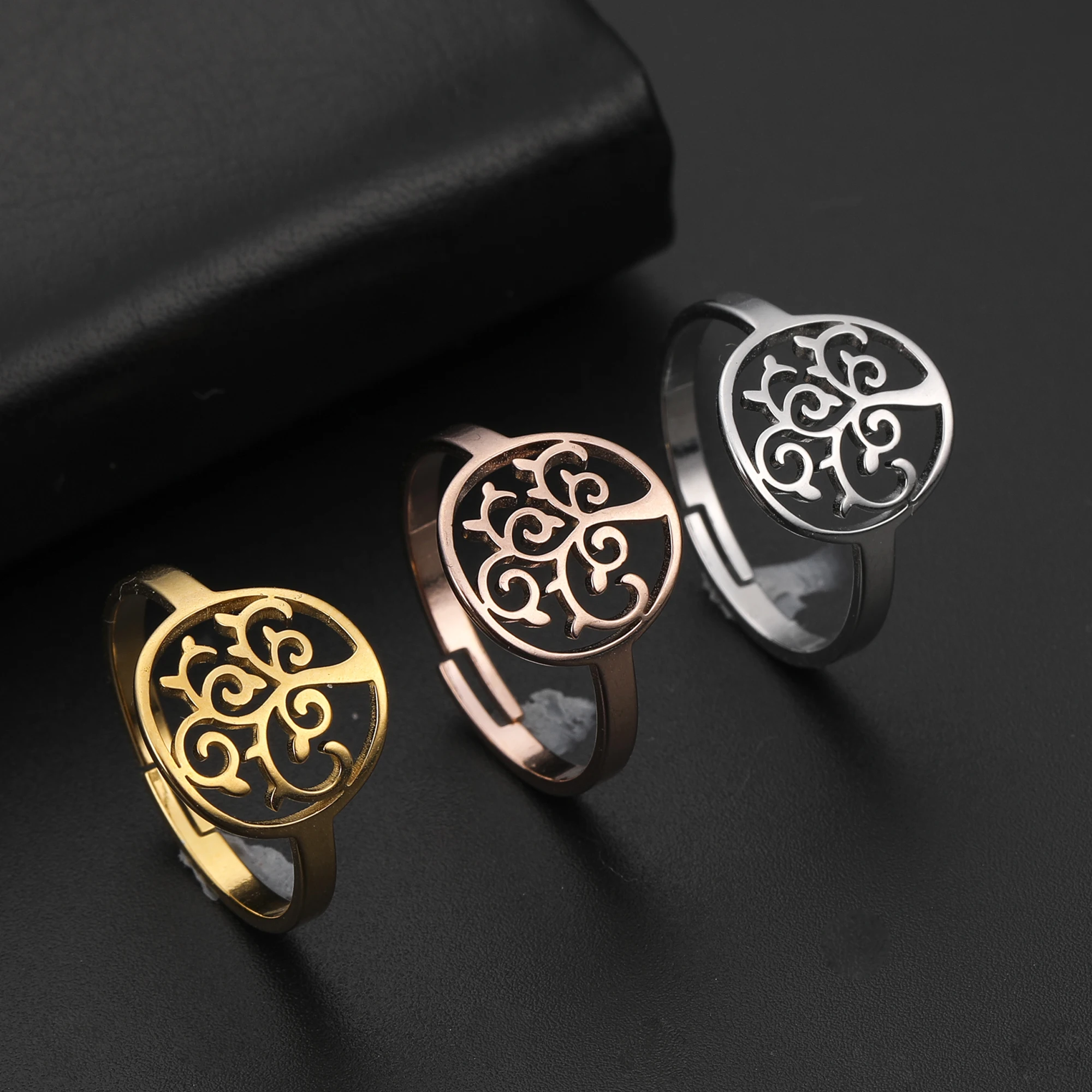Dawapara Винтаж Нержавеющаясталь Древо жизни кольцо для Для женщин полые изменяемый цвет розового золота Регулируемые кольца для пар