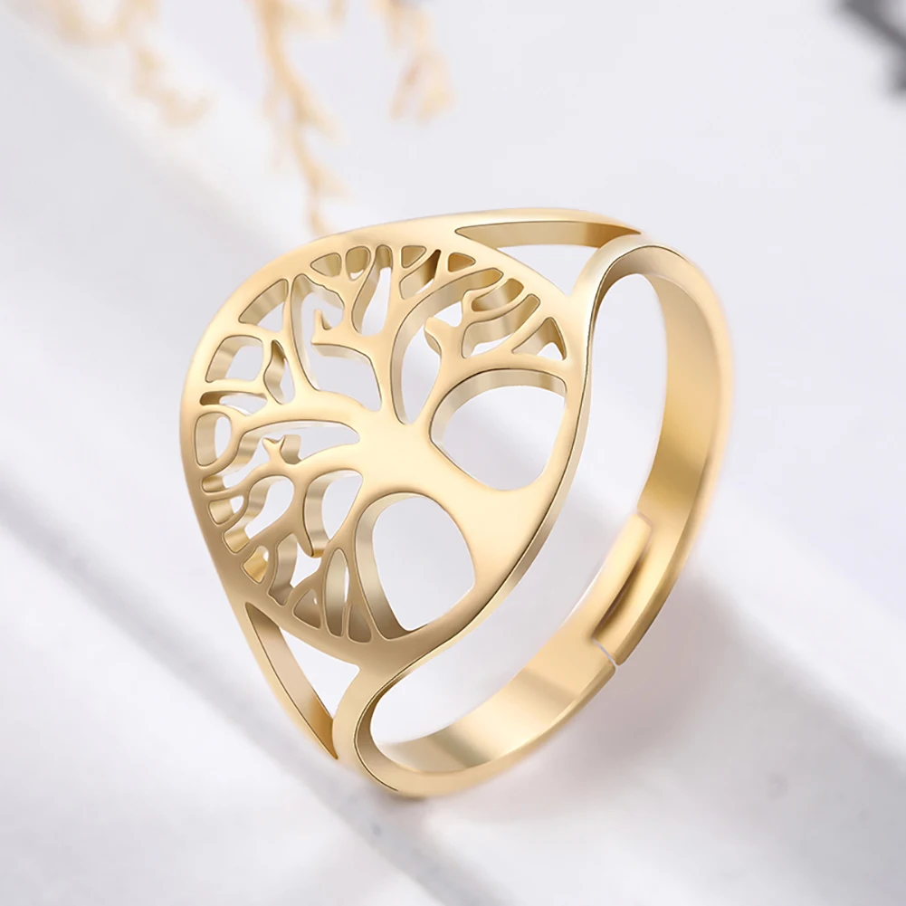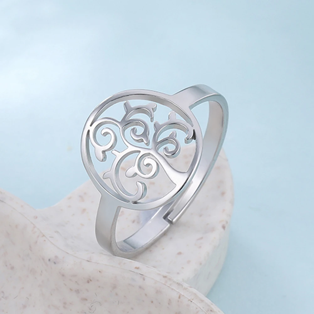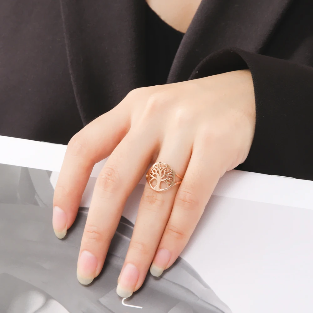 Dawapara Винтаж Нержавеющаясталь Древо жизни кольцо для Для женщин полые изменяемый цвет розового золота Регулируемые кольца для пар
