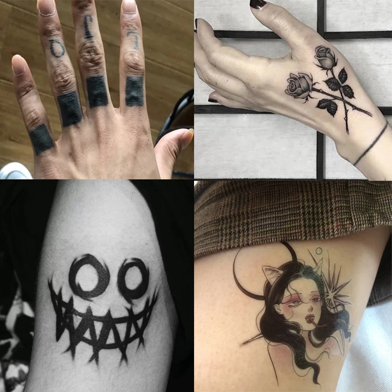 Темная роза любовь клоун ведьма квадратные татуировочные наклейки на запястье ins долговечные водонепроницаемые татуировочные наклейки