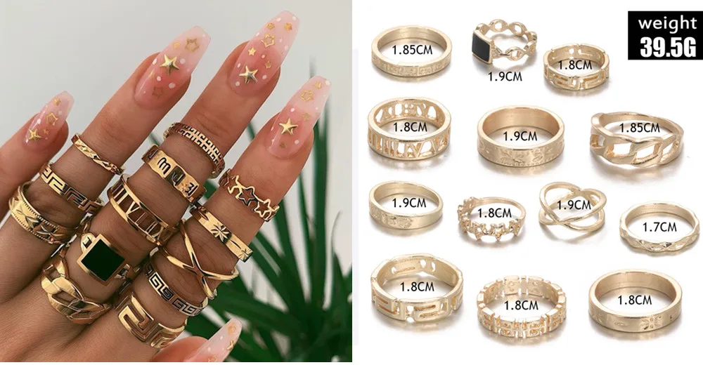 Набор колец в богемном стиле для девушек, комплект колец на палец и...