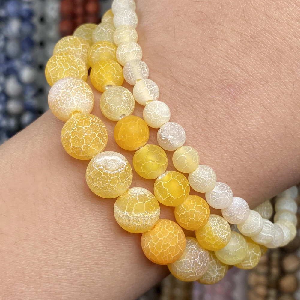 Натуральный камень, желтый Мороз трещины Агаты круглые бусины из оникса для самостоятельного изготовления ювелирных изделий браслет Шарм аксессуары, на Возраст 4-12 мм 15''