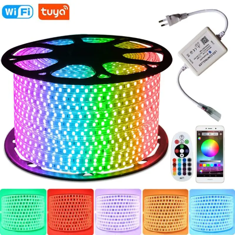 Светодиодная лента 100 м Luces 220 В наружные садовые светодиодные ленты 220 В RGB 5050 IP67 водонепроницаемая для рождественского внутреннего потолка с белсветильник том