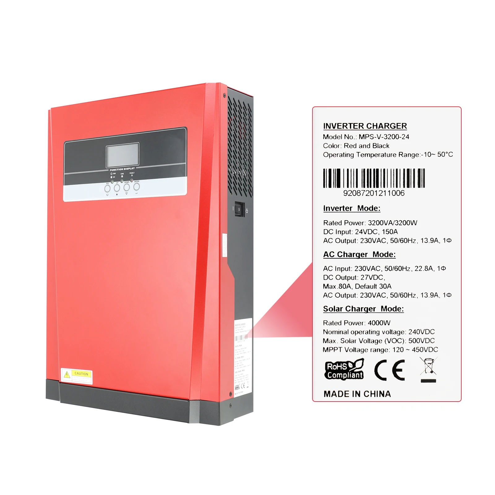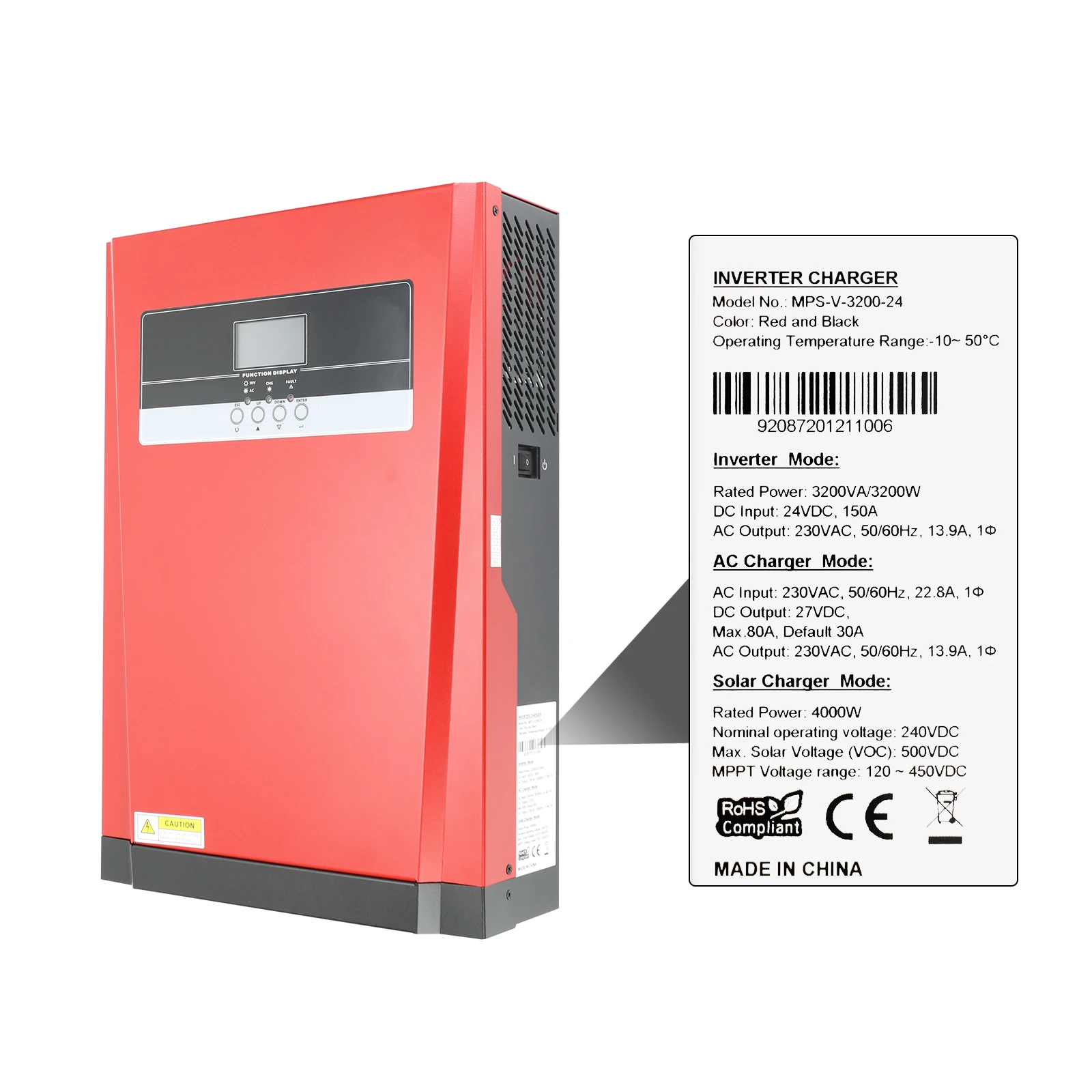 3200 Вт Чистая синусоида солнечный гибридный инвертор MPPT 80A Солнечная Панель зарядное устройство и зарядное устройство переменного тока все в одном 230VAC Солнечный контроллер заряда