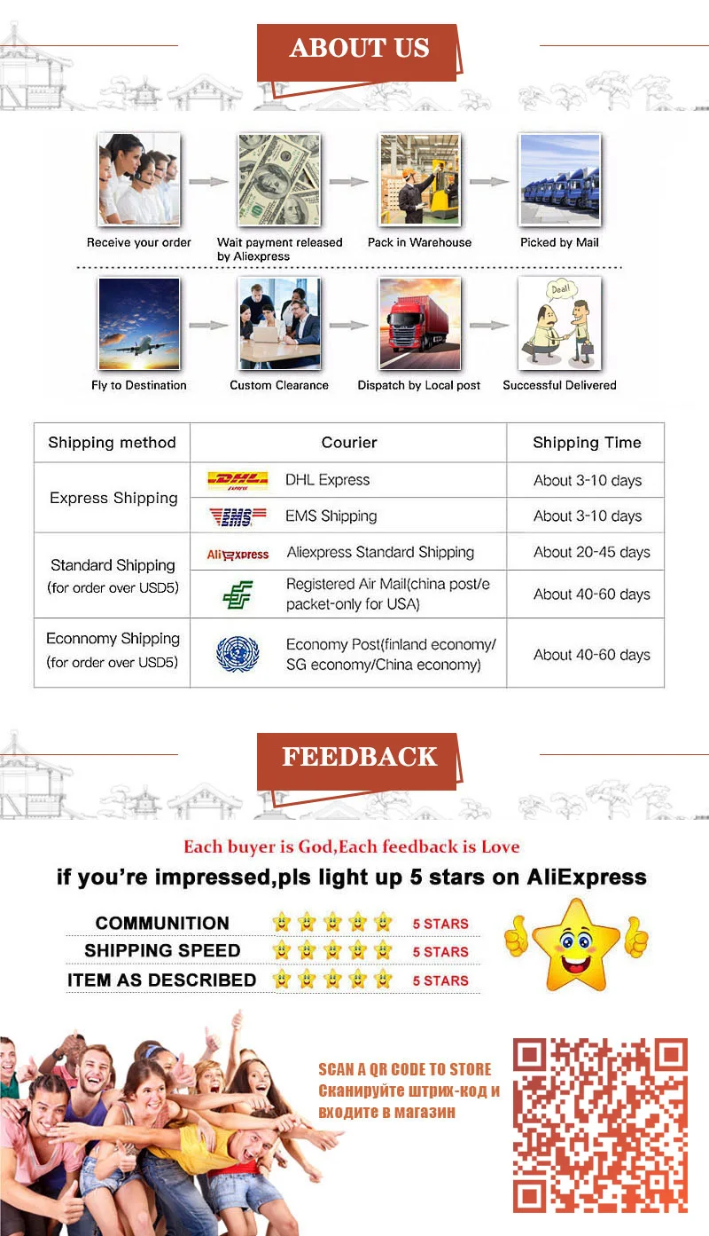 4. Время доставки: обычно занимает около15-30 рабочих днейИнформация о безопасности отправляется. Но иногда могут быть отложены до 30-60 рабочих дней, так как время доставки может варьироваться, особенно во время праздников.