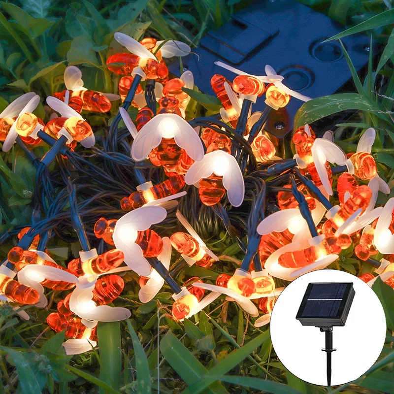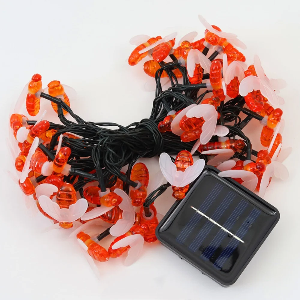Милая светодиодная гирлянда с пчелами на солнечной батарее, Сказочная гирлянда с пчелами, уличная, Садовая, рождественсветильник гирлянда для патио, на Рождество, для Хэллоуина