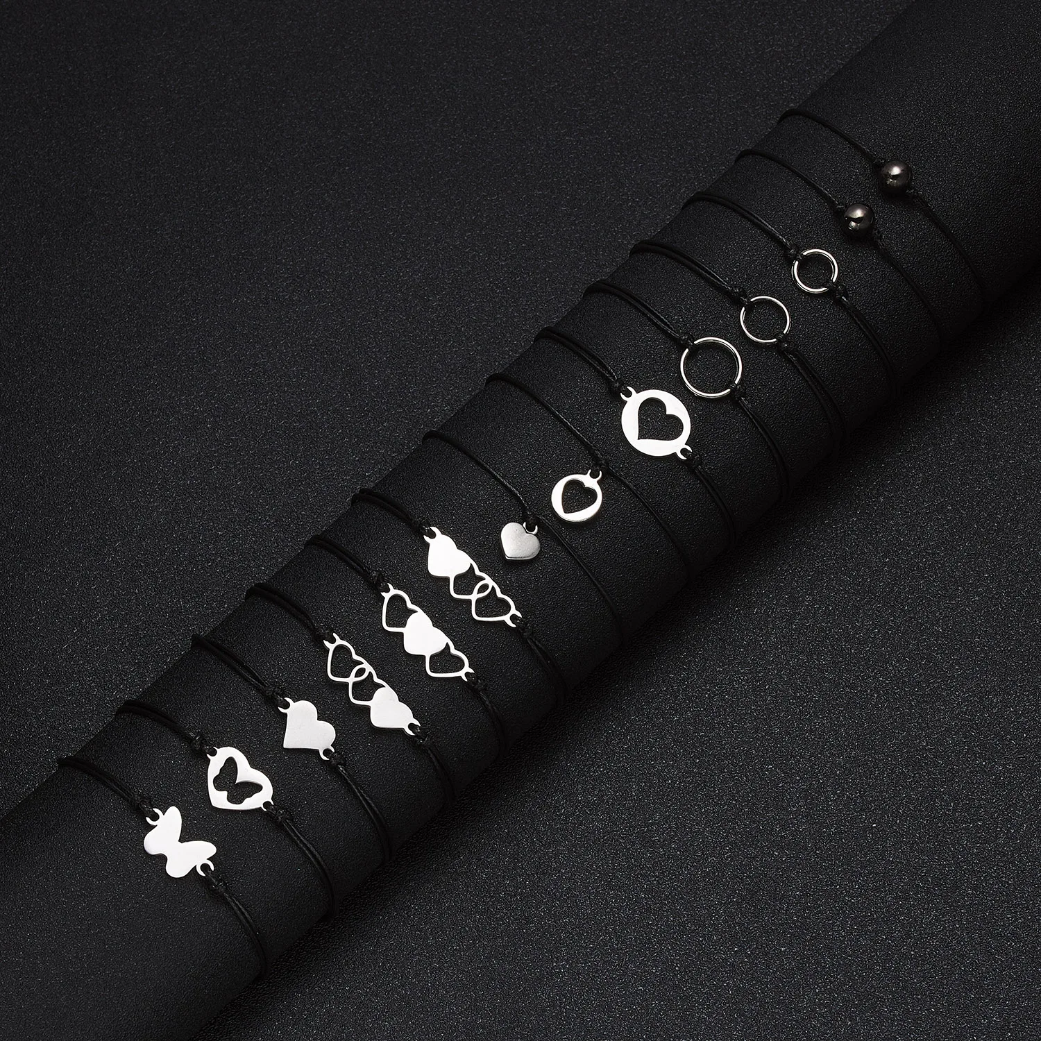 Плетеный браслет из нержавеющей стали, 2 шт.компл., регулируемый браслет с сердцем, для женщин, элегантный, полый, браслет бабочка, женский подарок
