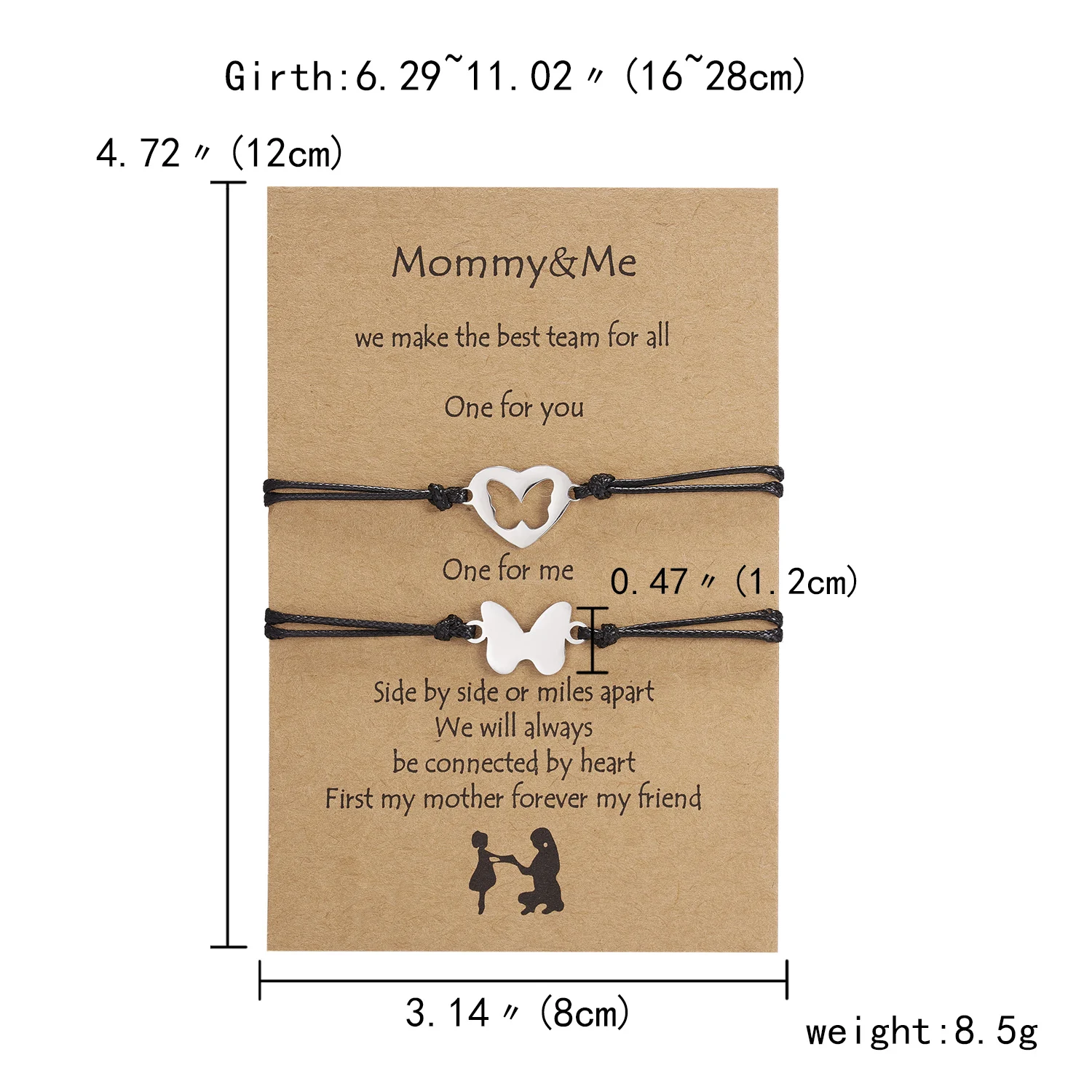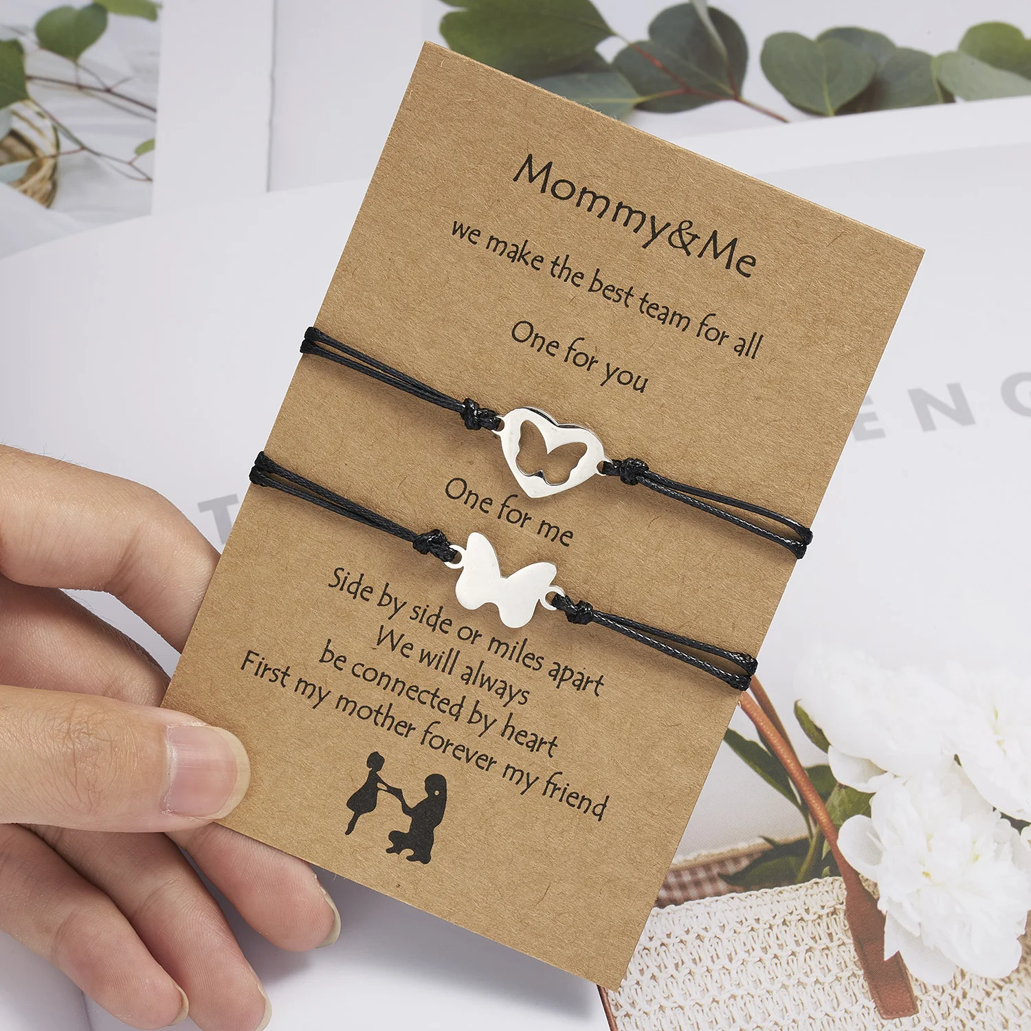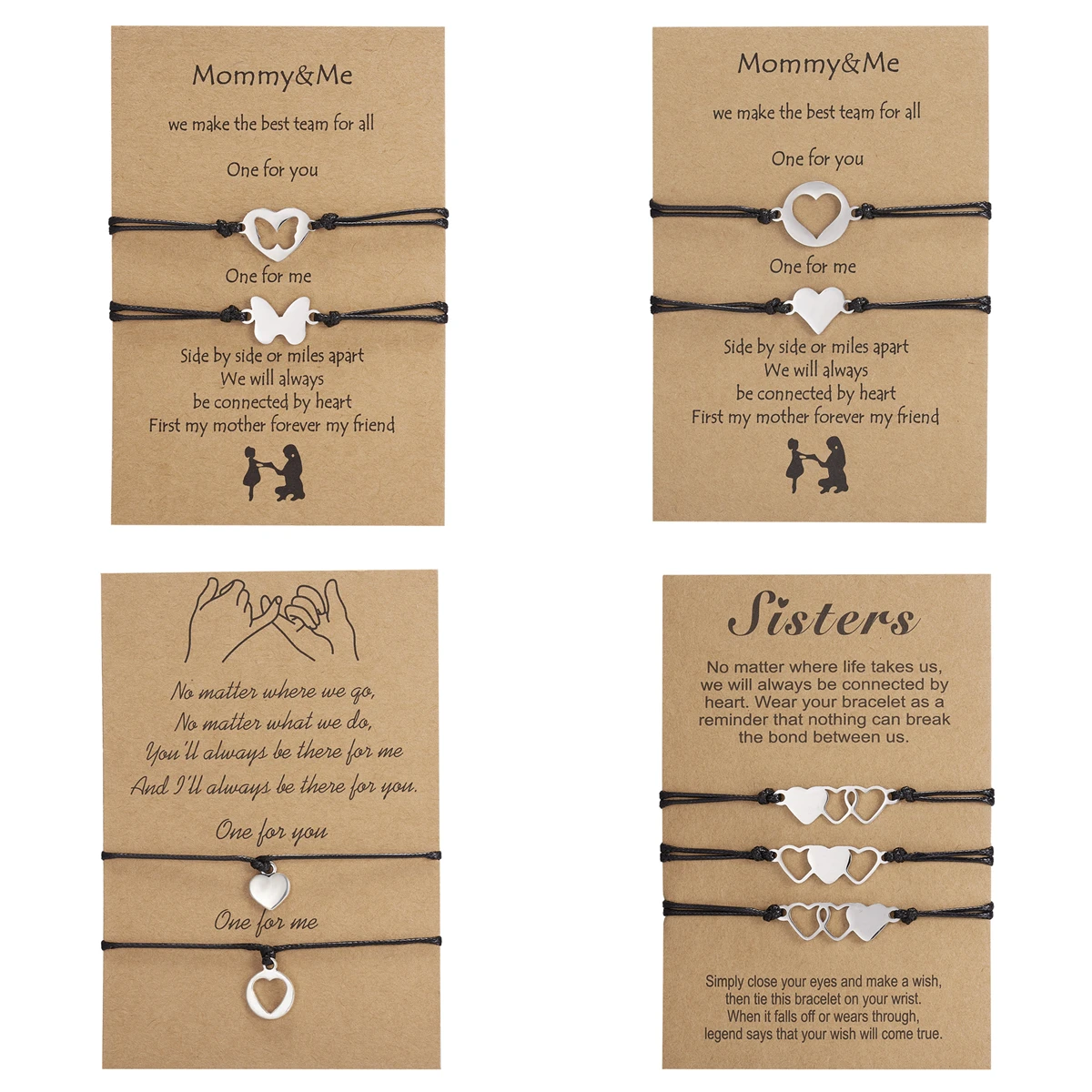 1 комплект регулируемых браслетов из веревки для женщин, браслет из нержавеющей стали с полым сердцем и бабочкой, браслет на день матери, подарок для жены и мамы