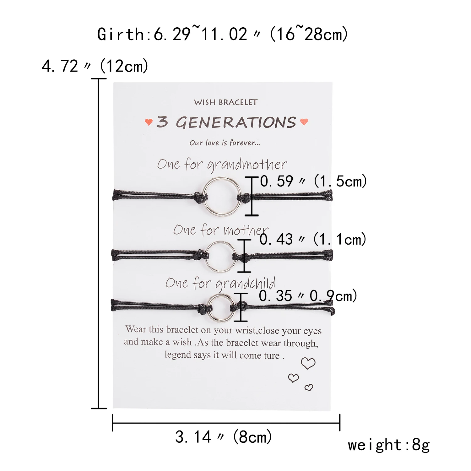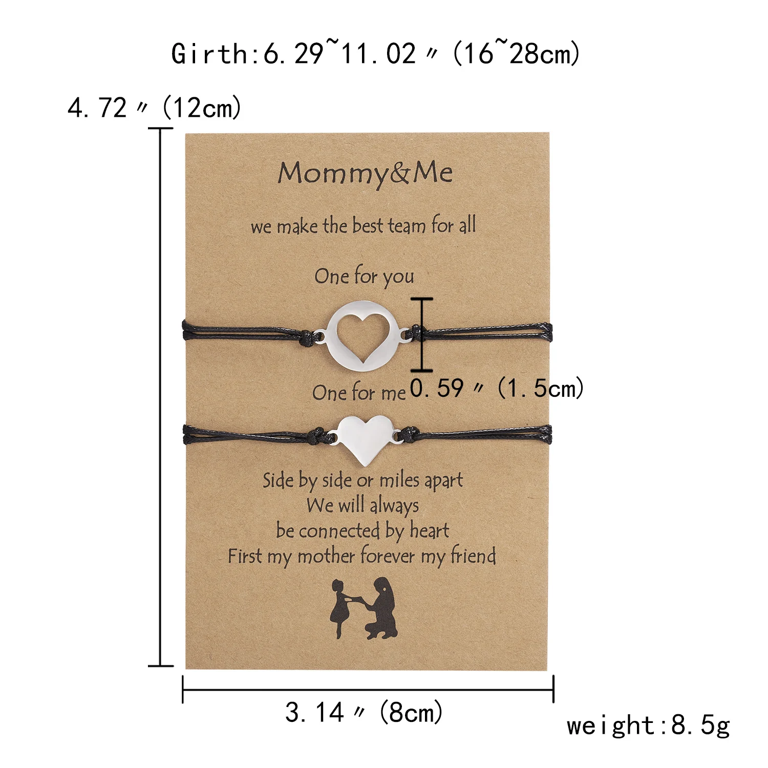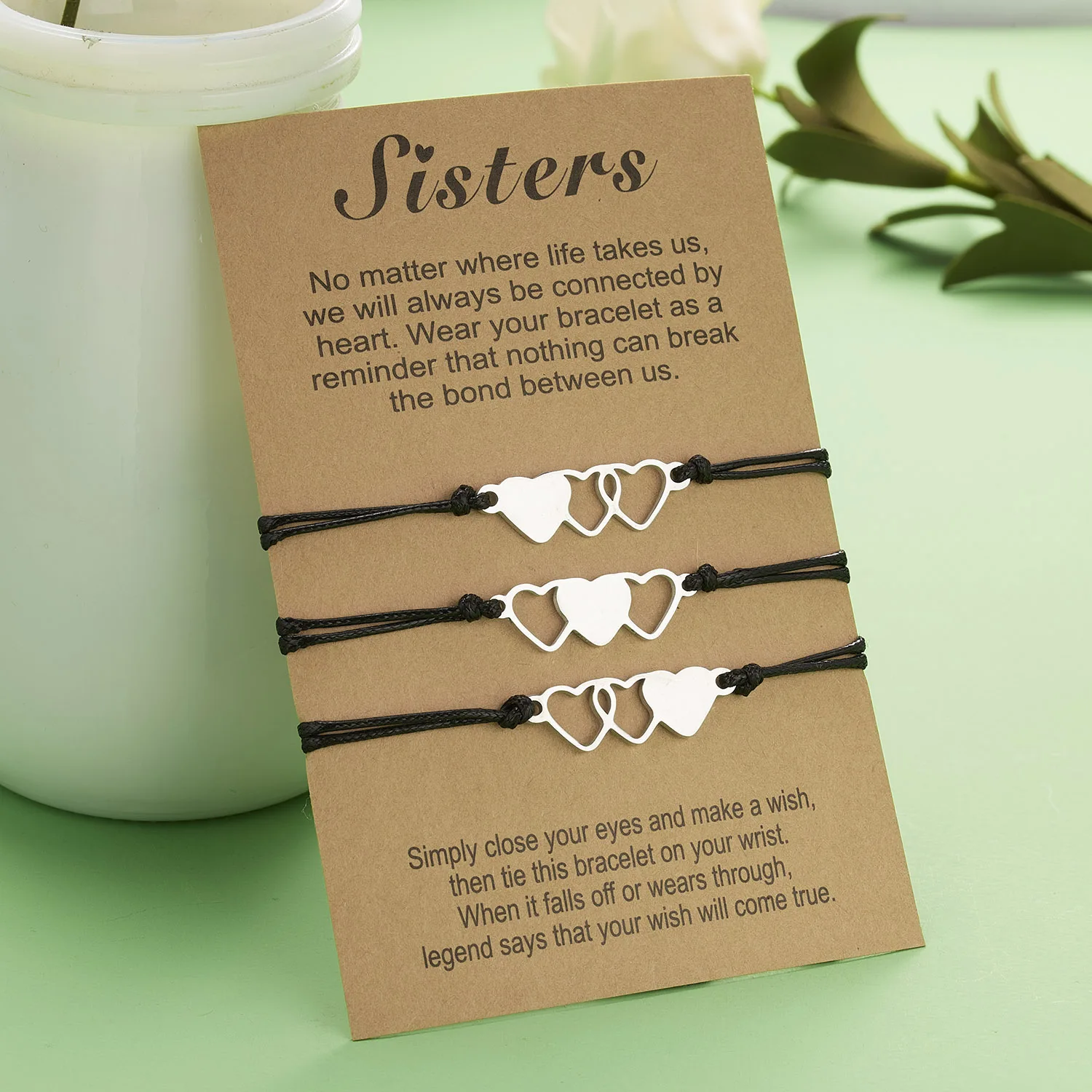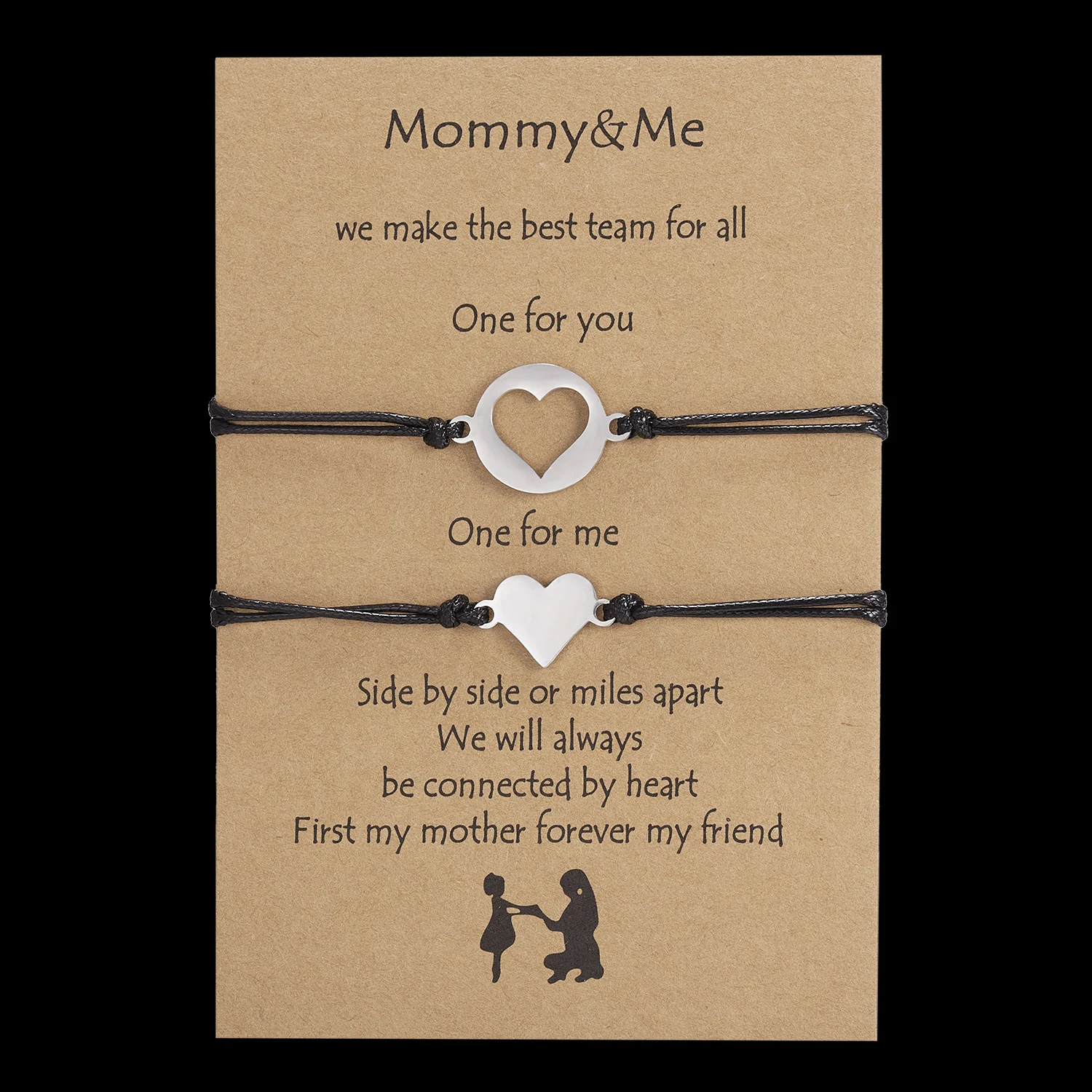 1 комплект регулируемых браслетов из веревки для женщин, браслет из нержавеющей стали с полым сердцем и бабочкой, браслет на день матери, подарок для жены и мамы