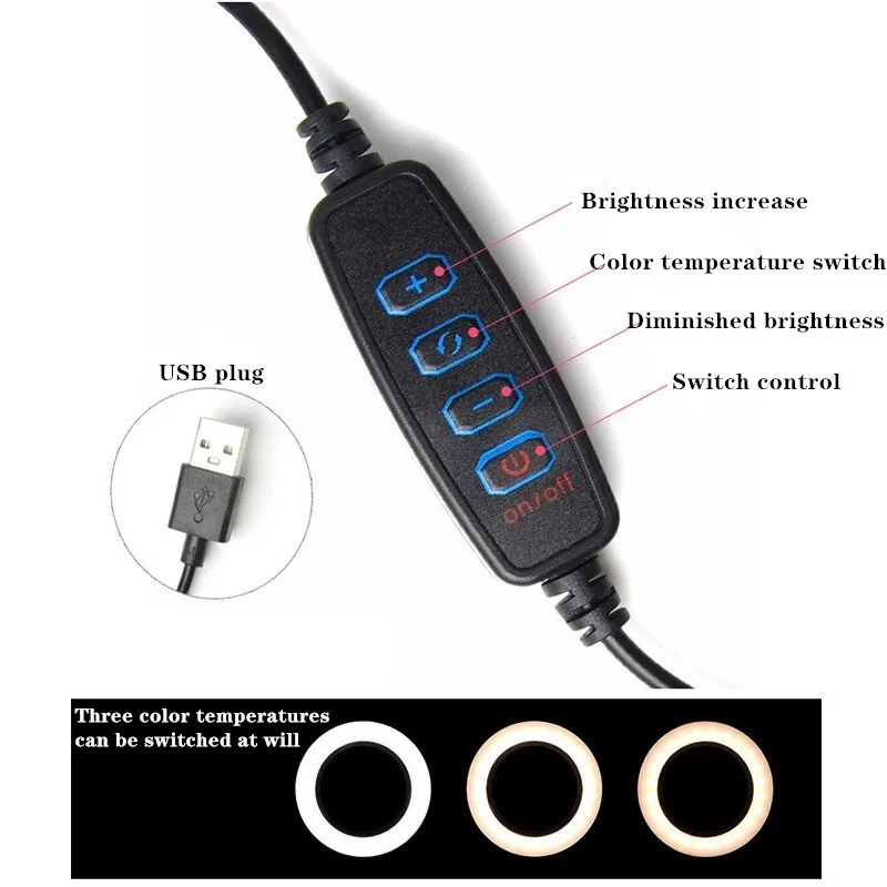 1.[Регулируемая подставка для штатива] Выдвижная от 35 см до 101 см, просто зафиксируйте ее в желаемой длине для вашего предпочтительного использования, вы можете стоять на полу или просто положить на стол для вашего удобства.2.[мульти-функциональный] 2-в-1 дизайн сочетает в себе держатель телефона и selfie ring светильник вместе, это профессиональный инструмент для создания видео в реальном времени/запись со смартфона или компьютера. Идеальный дополнительный светильник для макияжа, потоковой передачи в режиме реального времени, съемки Селфи, видеосъемки, онлайн-обучения, съемки темных пейзажей и т. Д.3.[универсальный держатель телефона] совместим практически со всеми смартфонами с чехлом или без, подходит для iPhone 5 SE 5S 6 6s6plus 6S Plus 7/87Plus/8 Plus/X/XS 5,8 ''/IPOD Touch5 / 6/XR/XS Max/для Samsung Galaxy/для Huawei/Xiaomi redmi/Moto/sony/Alcatel/LG/HTC. Поворот на 360 градусов, регулируемый обзор, может ли он быть горизонтальным, вертикальным или любым углом под солнцем.4.[USB Power ed] работает с большинством устройств, поддерживающих usb-порт, таких как ноутбук, ПК, внешний аккумулятор, зарядное устройство USB, адаптер переменного тока и т. д. Простое управление шнуром для включения/выключения или переключения в режим освещения, который вы предпочитаете.Кольцевой светильник подробнее о продукте:Потоковый светодиодный светильникТри светильник режимов (белый, теплый белый, теплый желтый)Устойчивый Штатив с противоскользящей ножкой10 уровней яркости освещенияУниверсальный держатель для мобильного телефона (2,36 "до 3,35" в ширину)Регулируемая высота стойки (от 14 до 47 дюймов)Быстрая и простая сборка, разборкаПосылка включает:Пожалуйста, посмотрите на картинку