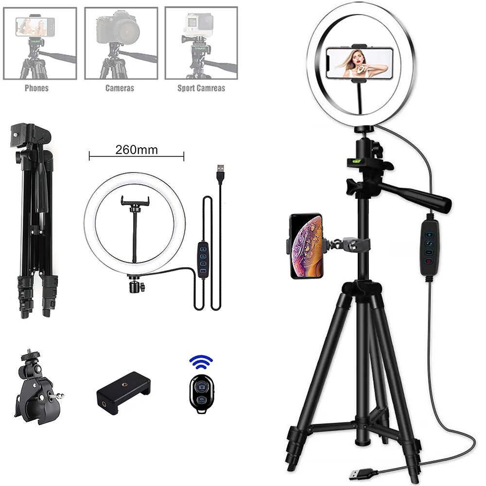 26 см светодиодный кольцевой светильник для селфи, кольцевая лампа для фотосъемки, комплект штатива для камеры, фото оборудование для Youtube Video