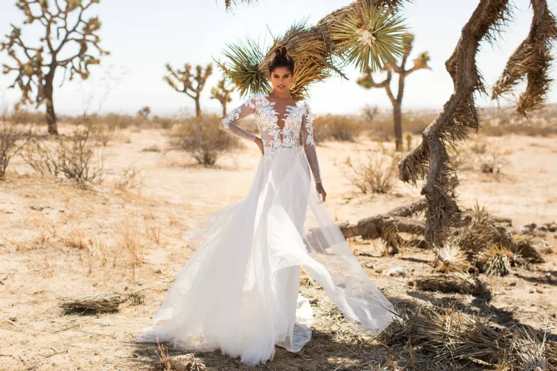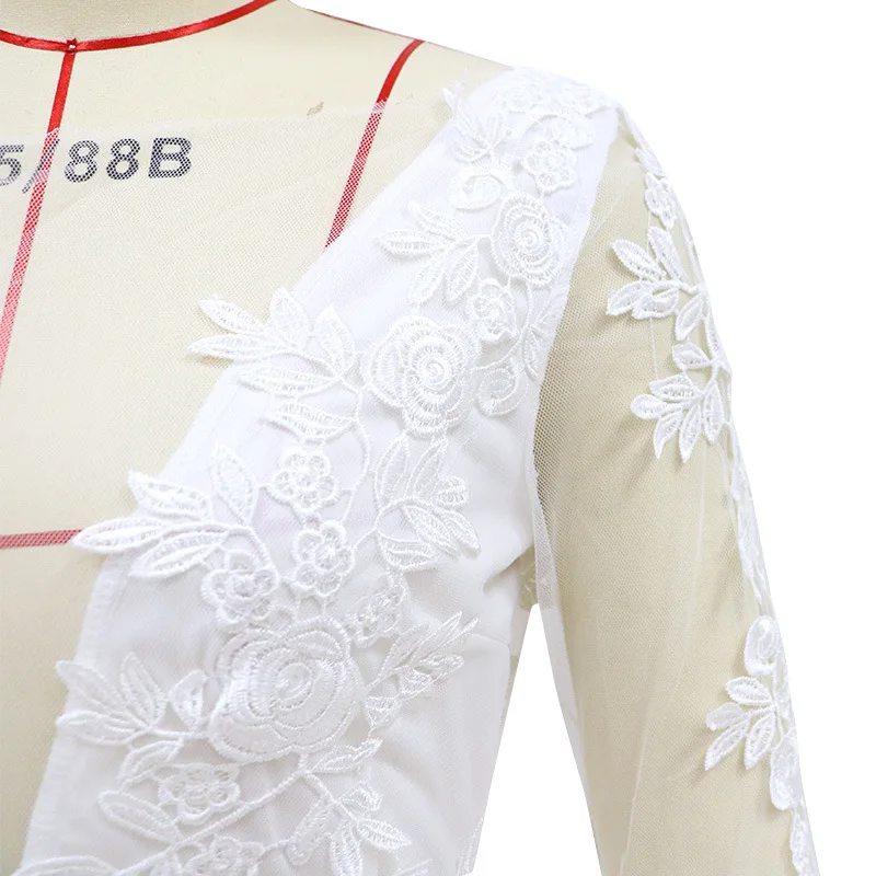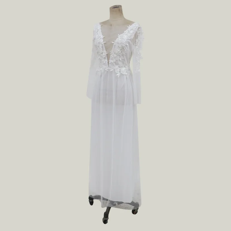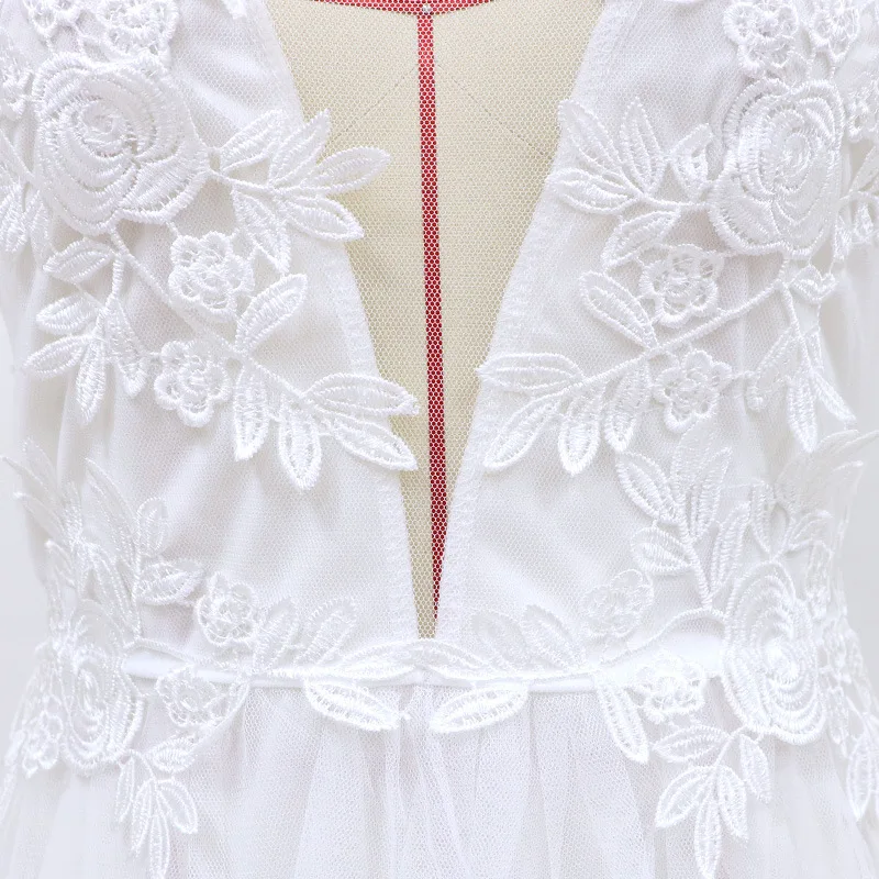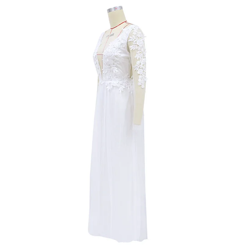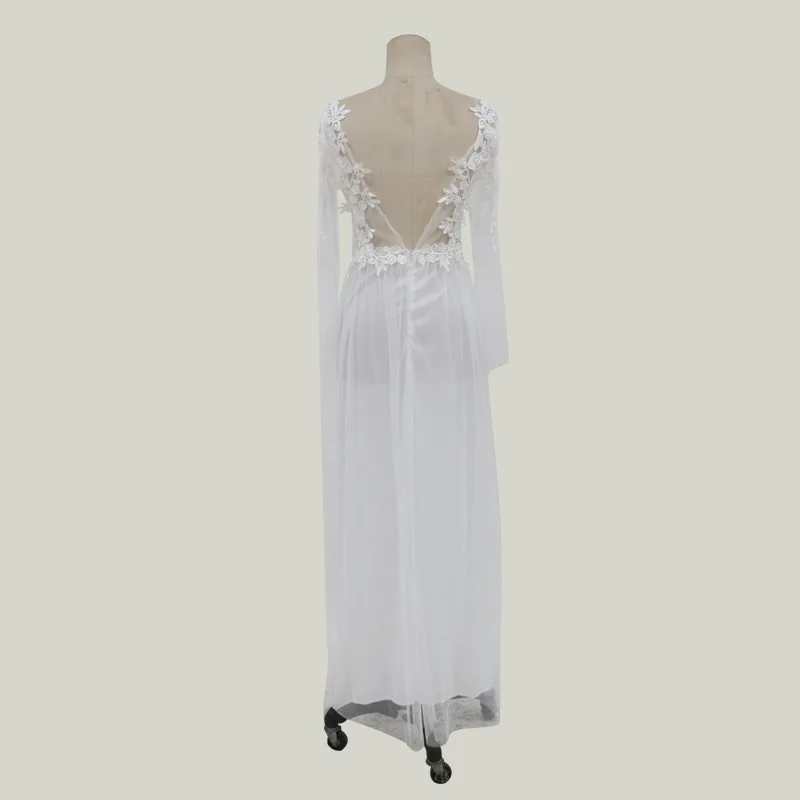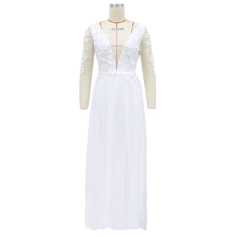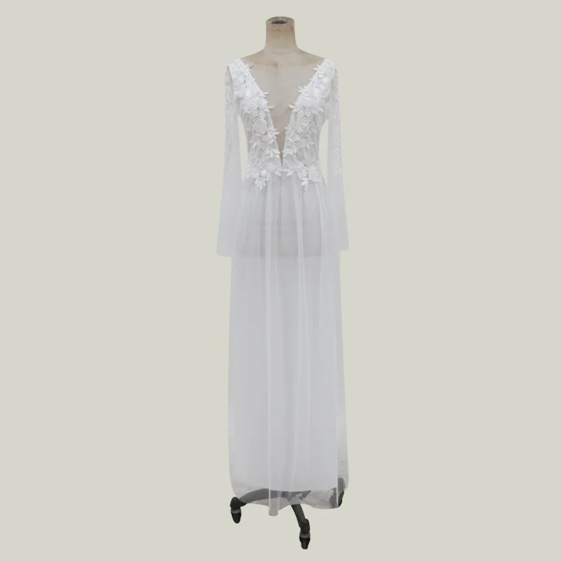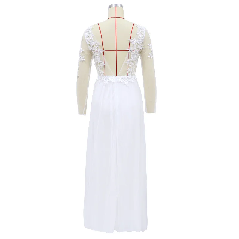 Женское кружевное платье подружки невесты, Белое Прозрачное платье с V-образным вырезом и длинным рукавом, лето 2021