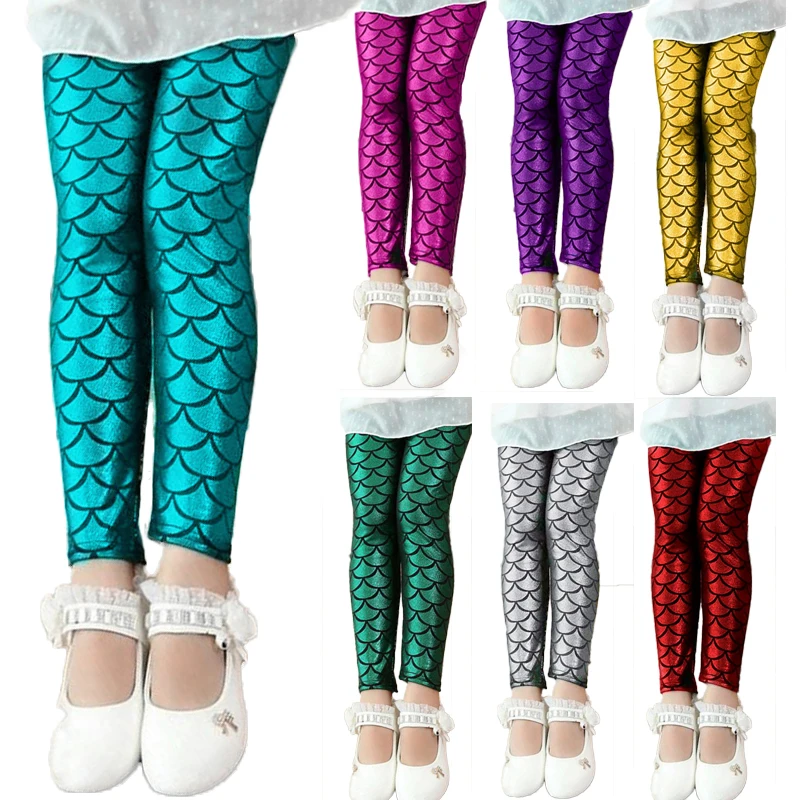 Леггинсы для девочек, яркие, блестящие, облегающие, для девочек, 2021, леггинсы русалка