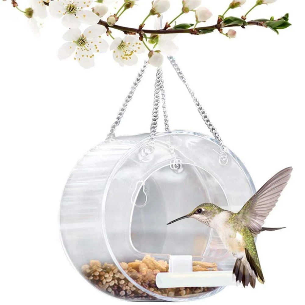Акриловая кормушка для птиц, прозрачный подвесной держатель для семян, для улицы, коробка для смотра окон