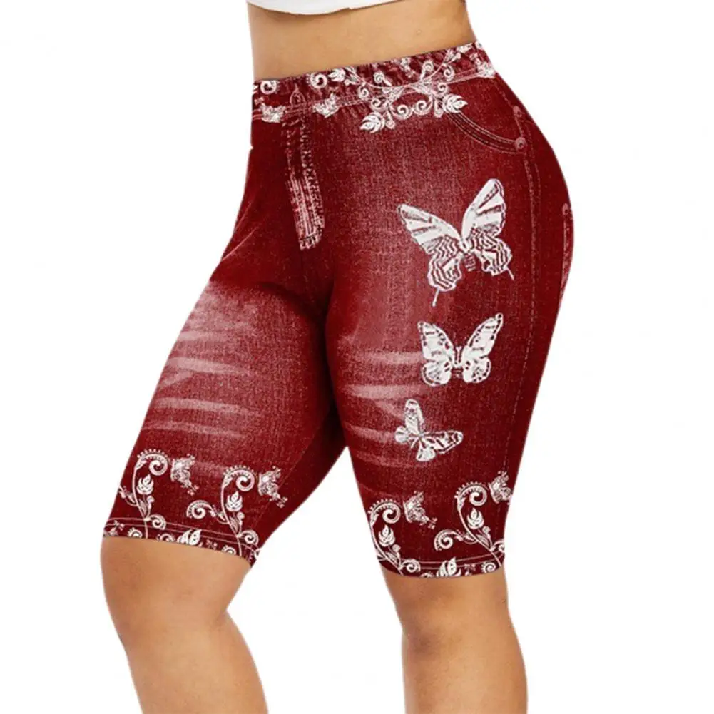 Летние шорты женские джинсы с высокой талией хип лифт Горячая с принтом бабочки; Узкие короткие дышащие спортивные фитнес уличная женские шорты 5XL