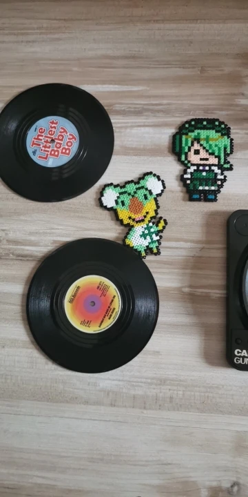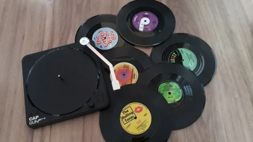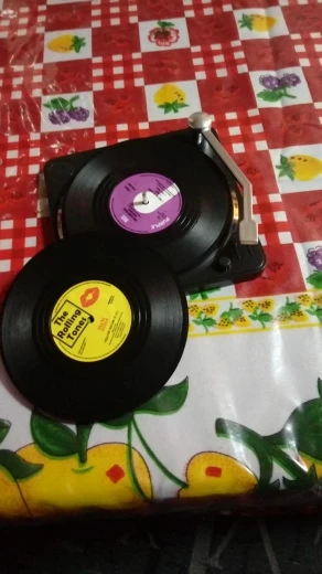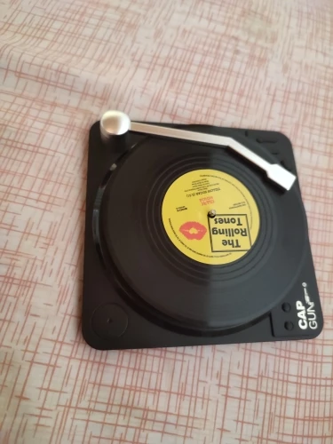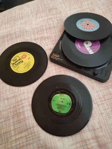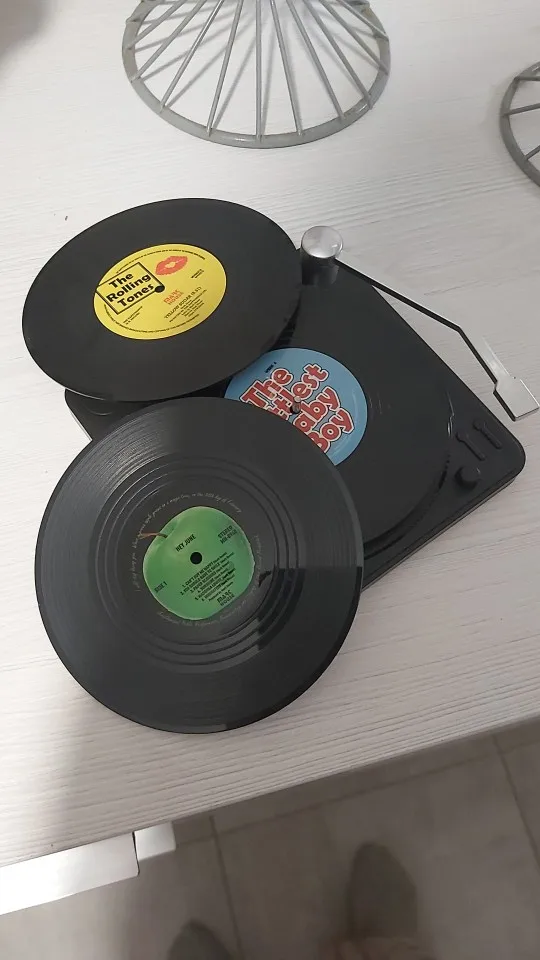 Leuk product, mooie decoratie de platenspeler met vinyl platen op tafel. Aanrader!