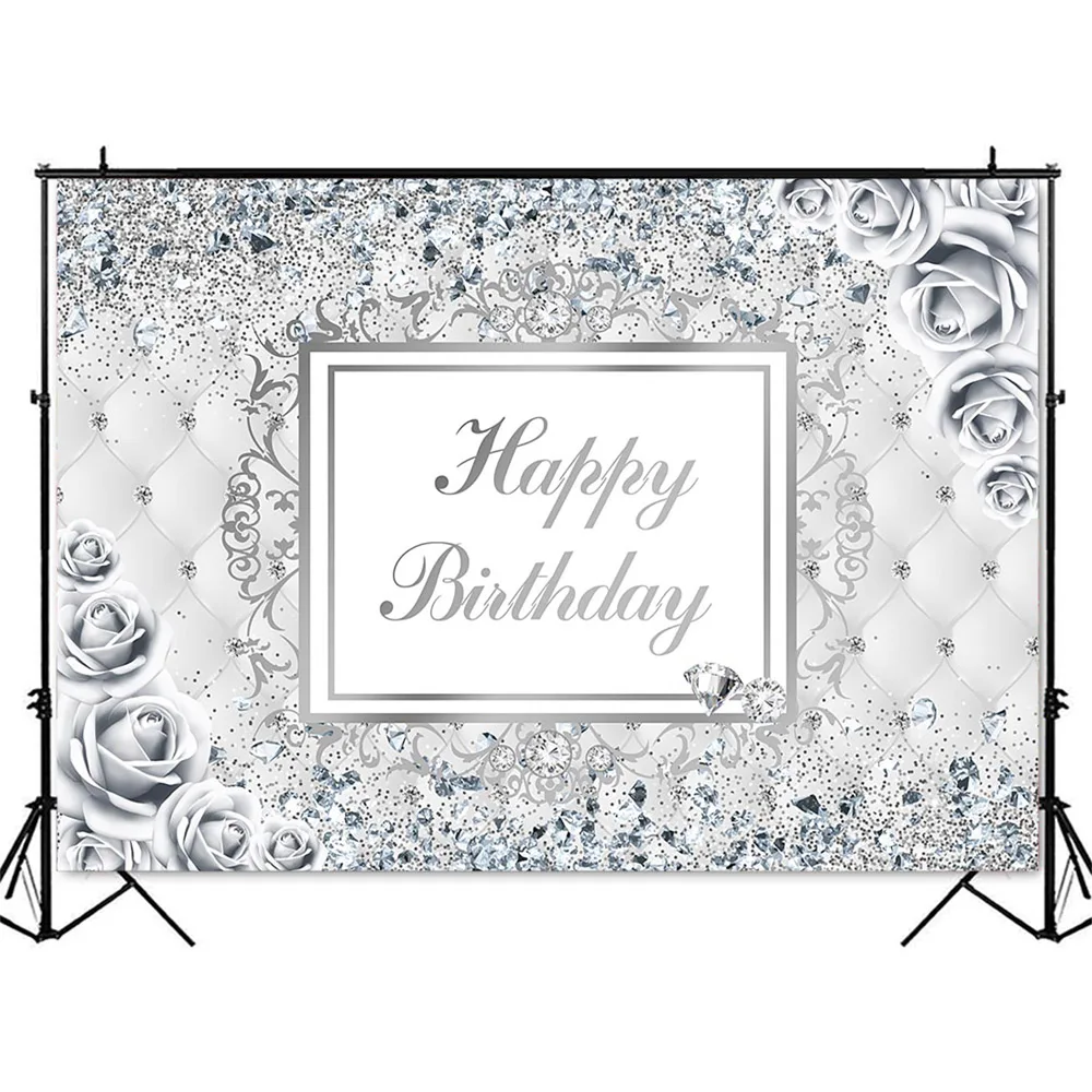 Фон для фотосъемки для взрослых женщин, с серебристыми блестками и цветами, 30, 40, 50, 60, для дня рождения