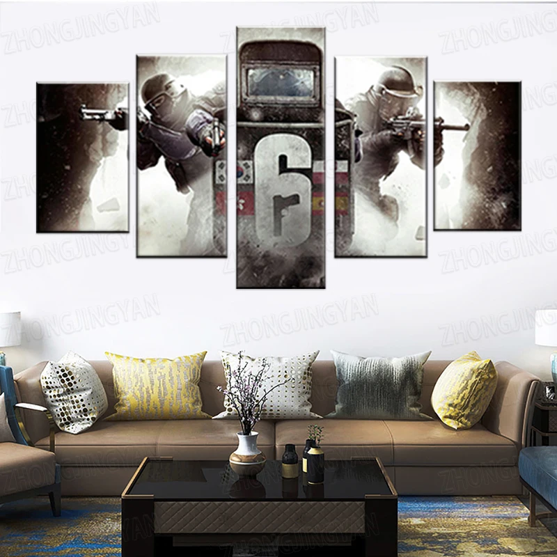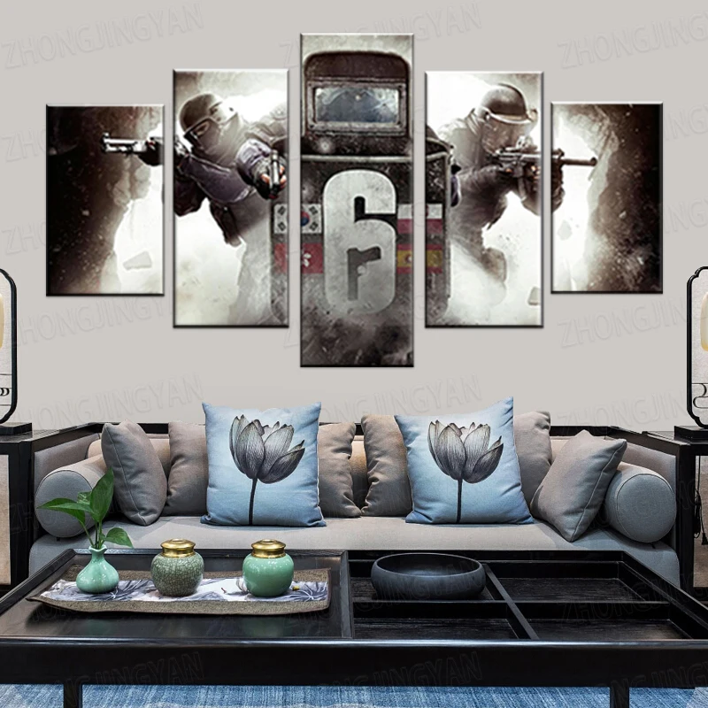 Hd картина из 5 частей с принтом Радуга шесть осада плакат для Холст Плакаты Декор Картина игру картинку для Спальня Wall Art домашний декор рамки