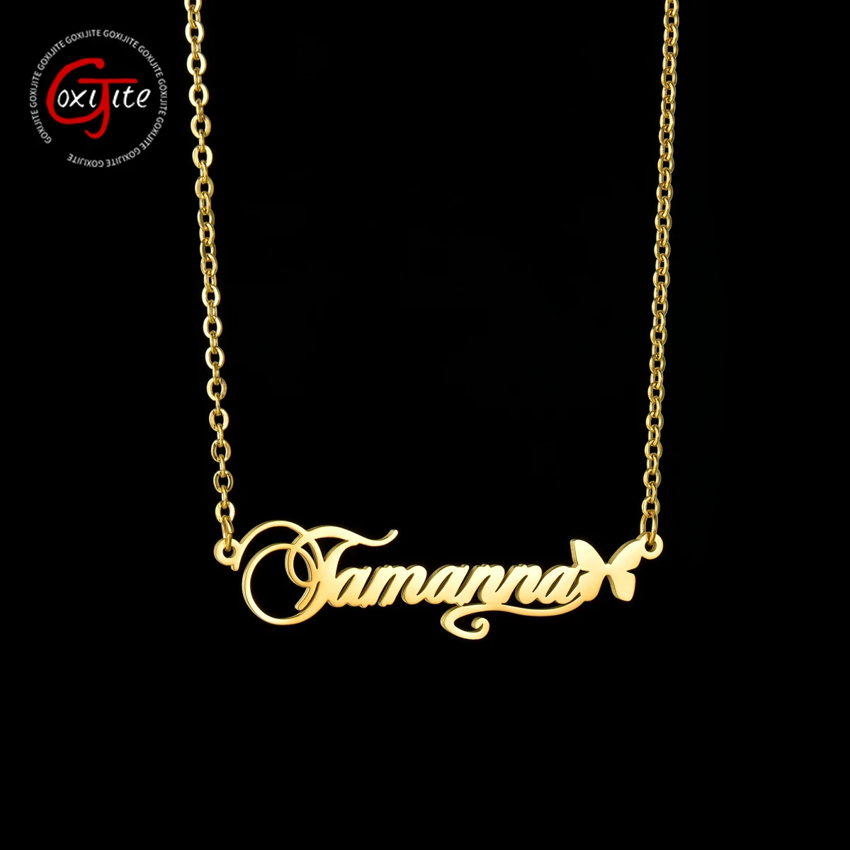Модное женское ожерелье Goxijite с именем бабочки на заказ, персонализированное ожерелье с курсивом и именной табличкой, ювелирные изделия, подарки с алфавитом