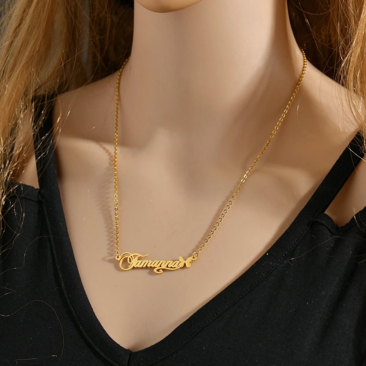 FeatureCursive font Name Pendant Necklace,Butterfly Name necklace