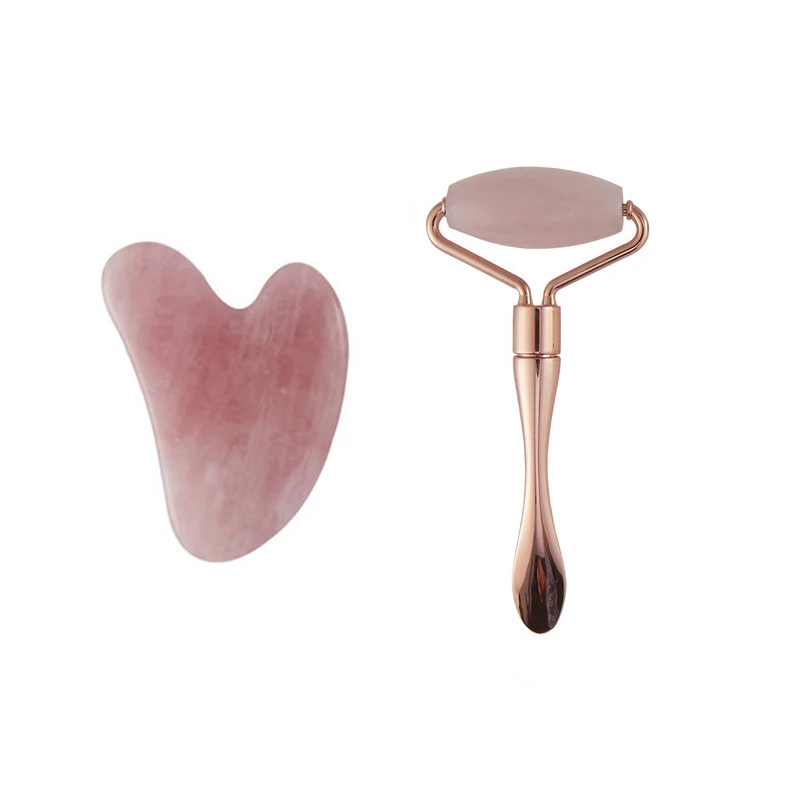 Набор инструментов для Массажа Гуаша, розовый кварц 2 в 1, скребок ...