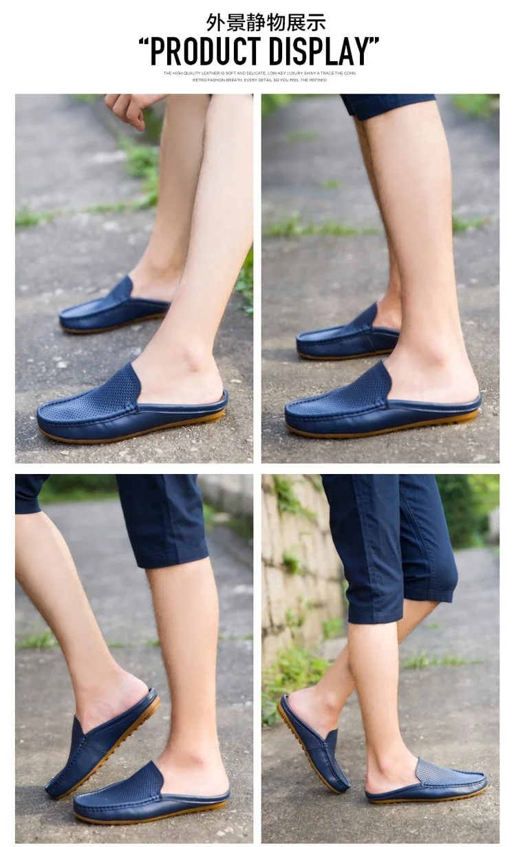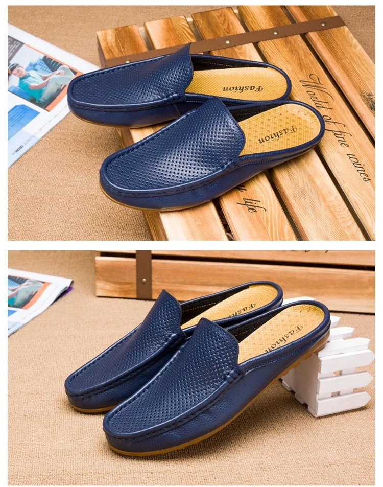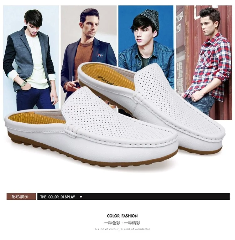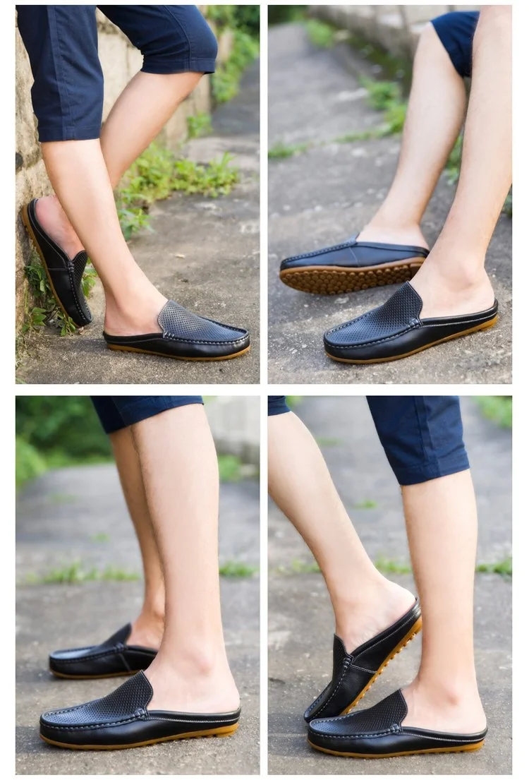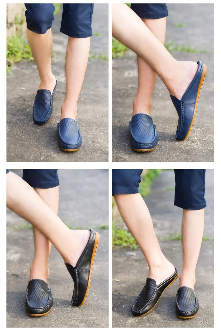 Color of leather loafers for menBlack White Blue Backless