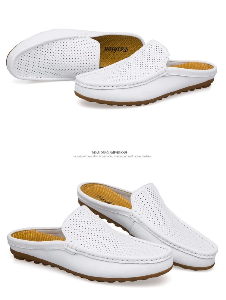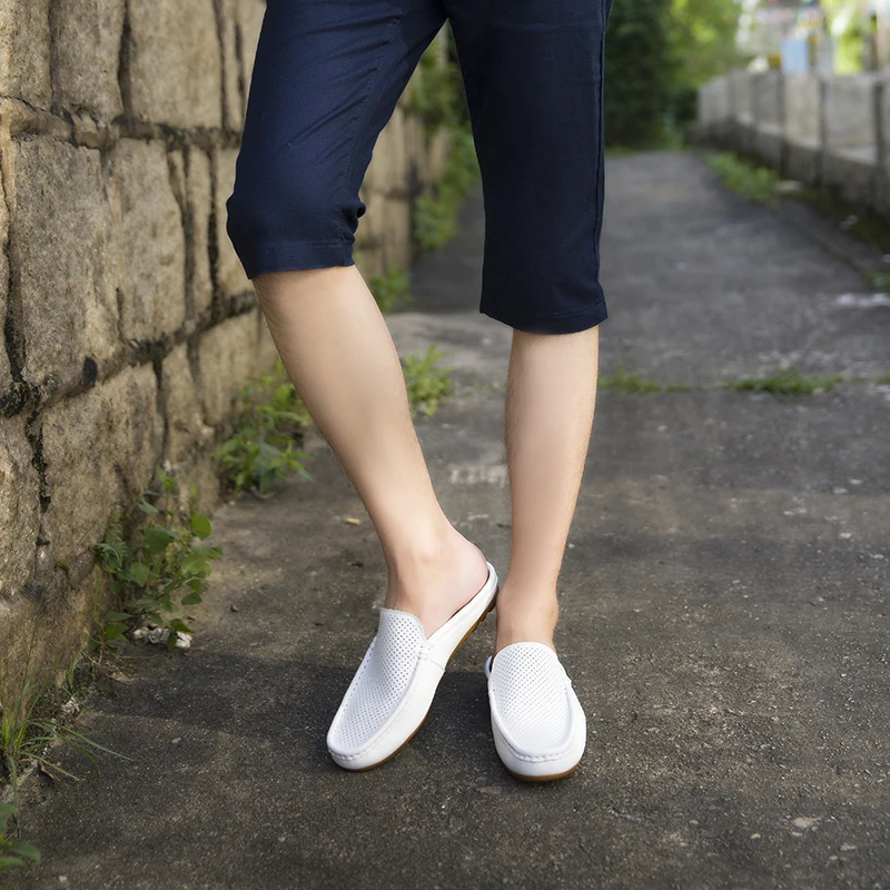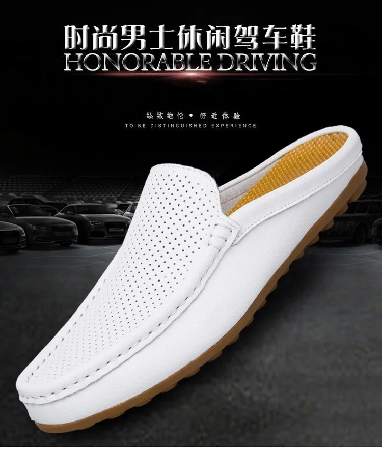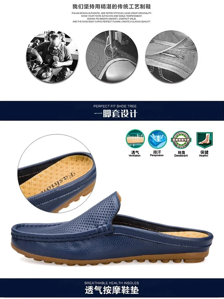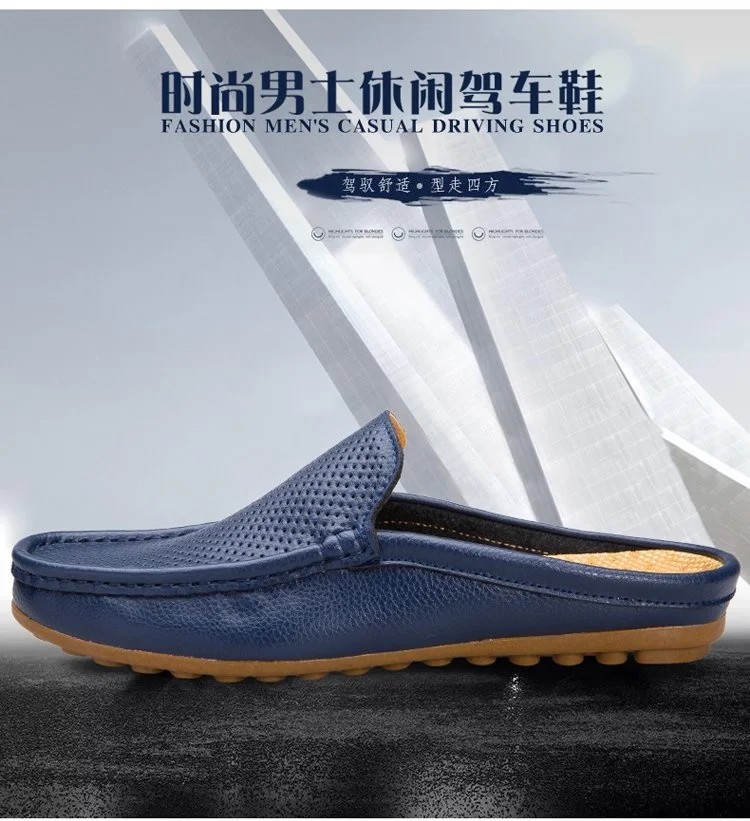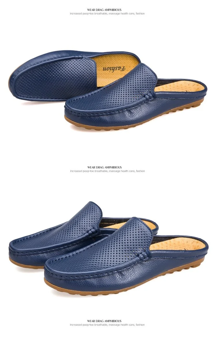 Color of leather loafers for menBlack White Blue Backless